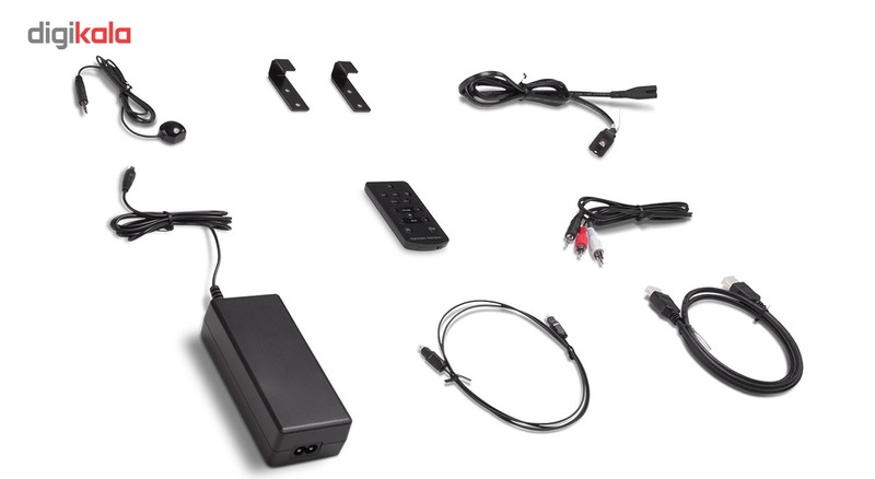 - آداپتور - کابل اپتیکال و 3.5 میلیمتری - کابل HDMI - ریموت کنترل - پایه دیواری - دفترچه راهنما