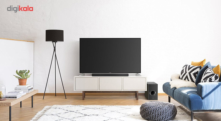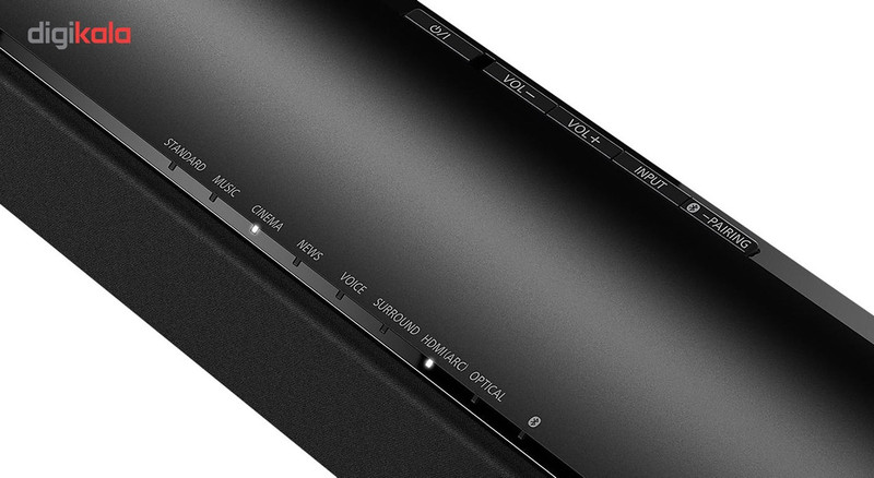 «SC-HTB488» یکی از ساندبارهای خوشساخت از «پاناسونیک» (Panasonic) است که گزینهای مناسب برای تقویت صدای تلویزیون به حساب میآید. این ساندبار 2.1 کانال خروجی دارد که نشاندهندهی دو یونیت اسپیکر داخلی و یک سابووفر است. برای این ساندبار قدرتخروجی 2000واتی در نظر گرفته شده است که باعث میشود برای فضاهای کوچک کارایی مفیدی ارائه کند. با قراردادن آن زیر تلویزیون، میتوانید لذت بیشتری را حین تماشای فیلم موردعلاقهی خود تجربه کنید. درواقع با این کار، SC-HTB488 تبدیل به اسپیکرهای تلویزیونتان میشود یکی از ویژگیهای بسیار جذاب این مدل، اتصال بیسیم بلوتوث آن است. از این طریق میتوانید فایلهای صوتی خود را از موبایل یا هر پخشکنندهی موسیقی مجهز به بلوتوث، به ساندبار منتقل کنید. جالب است بدانید، سابووفر این محصول به صورت بیسیم به ساندبار متصل میشود. درنتیجه محدودیتی بابت فاصلهی آنها نخواهید داشت. این محصول ابعاد نسبتاً جمعوجوری دارد و بهراحتی درجای موردنظرتان قرار میگیرد. برای توضیح در رابطه با ورودی و خروجیهای این محصول، باید گفت که برای آن یک عدد پورت HDMI تعبیه شده است که با تهیهی یک کابل مجزا، استفاده از آن ممکن میشود. این ساندبار علاوهبر درگاه مذکور، مجهز به ورودی صدای اپتیکال است که با تهیهی کابل اپتیکال مخصوص، میتوانید آن را به تلویزیونتان متصل کنید. درنتیجه بهراحتی میتوانید این محصول را به هر روشی که علاقه دارید، به تلویزیون یا پخشکنندههای صوتی متصل کنید. درمجموع پس از استفاده از این ساندبار، قدرتخروجی تلویزیون تغییر چشمگیری پیدا کرده و باعث میشود لذت تماشای تلویزیون بیشتر شود. توجه داشته باشید استفاده از این ساندبار جمع و مناسب برای تلویزیونهای 30 تا 40اینچی بوده و فضاهای کوچک را تحت پوشش قرار میدهد.