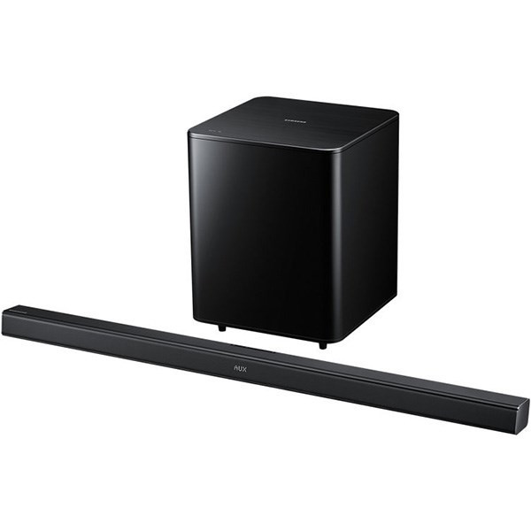 ساندبار سامسونگ، مدل «HW-H560» را میتوان یکی از پرقدرتترین مدلهای این کمپانی دانست. این مدل با قدرت خروجی 310 واتی خود، میتواند در سطوح بالای صدا، عملکرد بسیار خوبی را به همراه داشته باشد. همچنین امکان پشتیبانی از فرمتهای صوتی Dolby Digital, DTS, MP3, AAC, FLAC پخش انواع فایلهای موجود در آرشیو را فراهم میسازد. این ساندبار به وسیلهی خروجی HDMI میتواند به لپتاپ متصل شود و فایلهای در حال پخش را با صدایی باکیفیت، اجرا کند. اتصال Flash Memory به ساندبار را میتوان یکی از پرکاربردترین قابلیتها دانست، چراکه این قطعه اطلاعاتی در واقع یکی از رایجترین حافظههای قابل حمل محسوب میشود. پورت USB تعبیه شده در این مدل، این قابلیت را به راحتی فراهم میکند. همچنین برای پخش کردن مستقیم قایلهای گوشی موبایل از این ساندبار، یک ورودی AUX بر روی آن وجود دارد. همچنین صدای بم تولید شده از این محصول به وسیلهی سابوور بی سیم آن، تقویت میشود و گوش کردن به موسیقی را بسیار لذتبخش میکند. شایان ذکر است، کمپانی سامسونگ، یکی از اولین گزینههای محصولات صوتی و تصویری محسوب میشود؛ چراکه این شرکت با تولید محصولات با کیفیت، همواره در حال جذب مخاطبان بیشتر بوده و با جلب اعتماد مشتریان، تبدیل به برندی جهانی در این عرصه شده است.