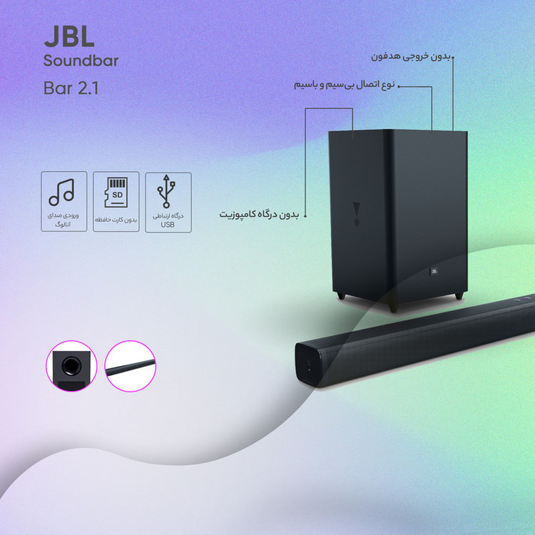 Max SPL 99db Frequency Response 40Hz to 20KHz Audio inputs 1 Analog, 1 Optical, Bluetooth, USB