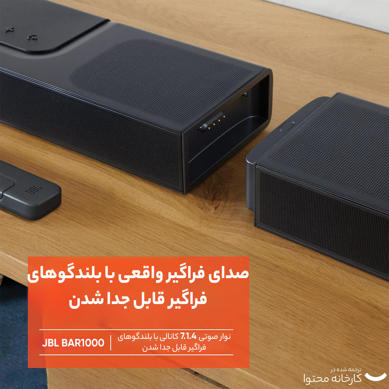 2 عدد اسپیکر جداشونده وایرلس - ریموت کنترل - 2 عدد باتری - کابل برق - 1 عدد کابل HDMI - چهار عدد گیره برای نصب روی دیوار
