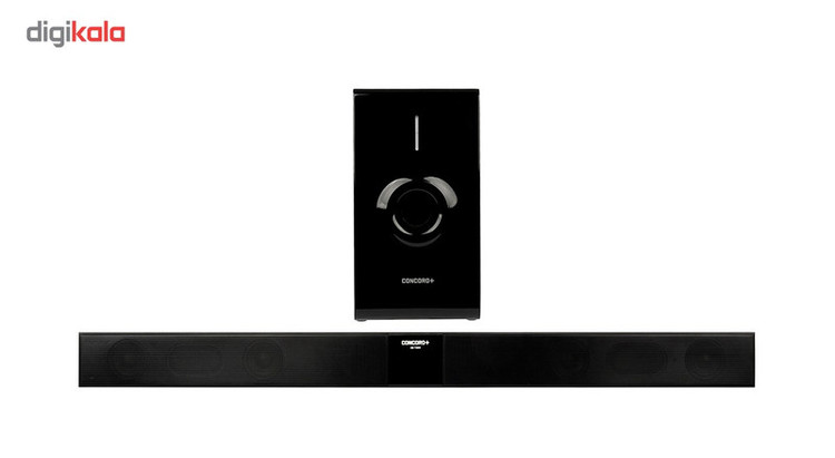 ساندبار «کنکوردپلاس» (Concord Plus) مدل «SB-T99S» محصولی کارآمد از این برند است که برای سالنهای متوسط گزینهی بسیار خوبی به حساب میآید. این ساندبار از دو قطعه سابووفر و ساندبار تشکیل شده است که باعث میشود، صدا بهخوبی تولید و تقویت شود. یونیت سابووفر آن 6.5اینچی بوده و از قدرت بسیار خوبی بهرهمند است؛ همچنین یونیت اسپیکرهای آن در سایز 2.5اینچی و متناسب با کاربریاش طراحی شده است. پاسخفرکانسی اسپیکر، 20 تا 4000هرتز و سابووفر، 40 تا 150 هرتز است که به دلیل تطابق نسبی با طیف شنوایی انسان باعث میشود بتوانید تمامی صداهای تولیدشده از این ساندبار را بشنوید. اتصال سابووفر به ساندبار از طریق کابل انجام میشود و باید فاصلهی کمی از یکدیگر داشته باشند. با کمک تکنولوژی بلوتوث در این محصول، میتوانید موبایل هوشمند خود را به تلویزیون متصل کرده و آرشیو موسیقی خود را از این طریق به پخش بگذارید. با این ویژگی دیگر به کابل نیازی ندارید و از گوشکردن به موسیقی لذت بیشتری میبرید؛ همچنین این ویژگی باعث میشود تمامی افراد حاضر در جمع بتوانند موسیقی دلخواه خود را پخش کنند. وجود درگاه اپتیکال و کواکسیال، اتصال راحت ساندبار را به تلویزیون و سایر دستگاههای صوتی و تصویری ممکن میسازد. توجه داشته باشید، برای استفاده از این درگاهها باید کابل جداگانهای تهیه کنید. وجود پورت USB در این ساندبار امکان اتصال فلشمموری و استفاده از فایلهای صوتی موجود در آن را فراهم میکند. درگاه AUX این محصول نیز اتصال سایر دستگاههای دیجیتالی فاقد بلوتوث را امکانپذیر میکند. این ساندبار برای تلویزیونهای کوچک و متوسط گزینهی خوبی بهحساب میآید. بهمنظور استفادهی راحت از این محصول به همراه آن یک عدد ریموتکنترل ارائه میشود.