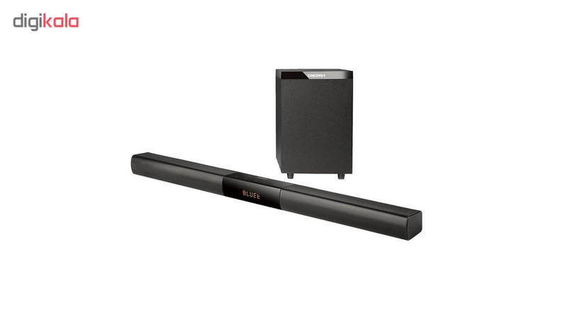 ساندبار SB-T88 با حداکثر توان 1500 وات، یک سیستم صوتی خانگی است که از یک ساندبار 95 سانتی متری و یک ساب ووفر به همراه یک ریموت کنترل بی سیم تشکیل شده است. تمامی این اجزا در کنار هم صدای دالبی دیجیتال بی نظیری را به شما ارائه می دهد بدون اینکه همانند مدل های سینمای خانگی نیازی به چندین اسپیکر و کابل کشی های فراوان و فضای زیاد داشته باشید. در قسمت میانی ساندبار، صفحه نمایش LED لمسی قرار گرفته که اطلاعات سیستم صوتی را برای شما نمایش می دهد و همانند یک پنل کنترل عمل میکند. البته این ساندبار دارای ریموت کنترل نیز می باشد و از راه دور می توانید تنظیمات لازم را اعمال نمایید. SB-T88 قابلیت اتصال به انواع مختلفی از دستگاه های پخش را از طریق پورت دیجیتال اپتیکال و دیجیتال کواکسیال دارد و صدایی بسیار با کیفیت و واقعی را به شما ارائه می دهد. حتی می توانید دستگاه های هوشمندتان را از طریق Aux ،USB و بلوتوث به این ساندبار متصل کنید و تمامی فایل های صوتی خود را با کیفیت بی نظیر گوش دهید. SB-T88 با داشتن ساب ووفری مجزا، صدایی عالی با بیسی غنی به شما ارائه می دهد و همچنین می توانید فیلم های روز دنیا را با کیفیت صدای دالبی دیجیتال ببینید و نهایت لذت را از سیستم صوتی خود ببرید.