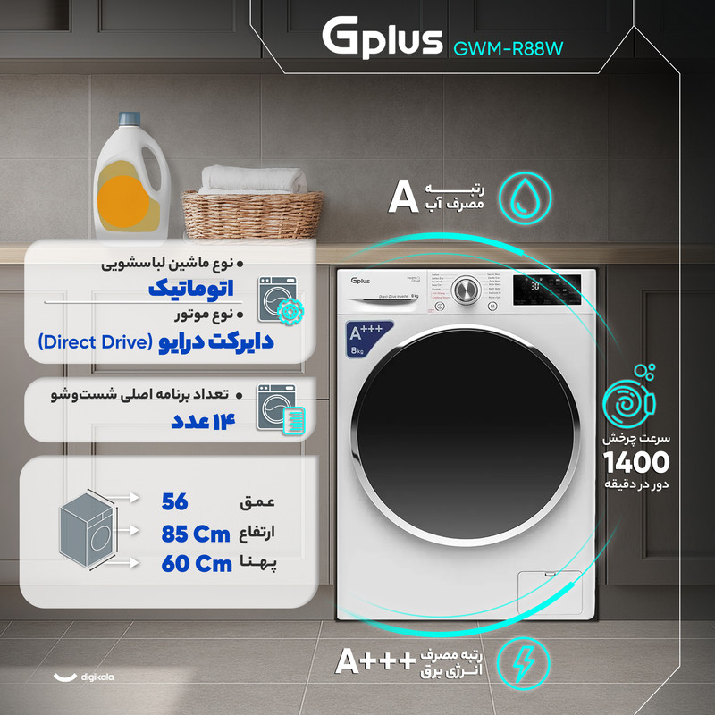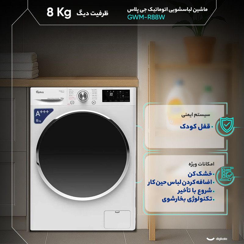 ماشین لباسشویی 8 کیلوگرم اتوماتیک جی پلاس مدل GWM-R88W
