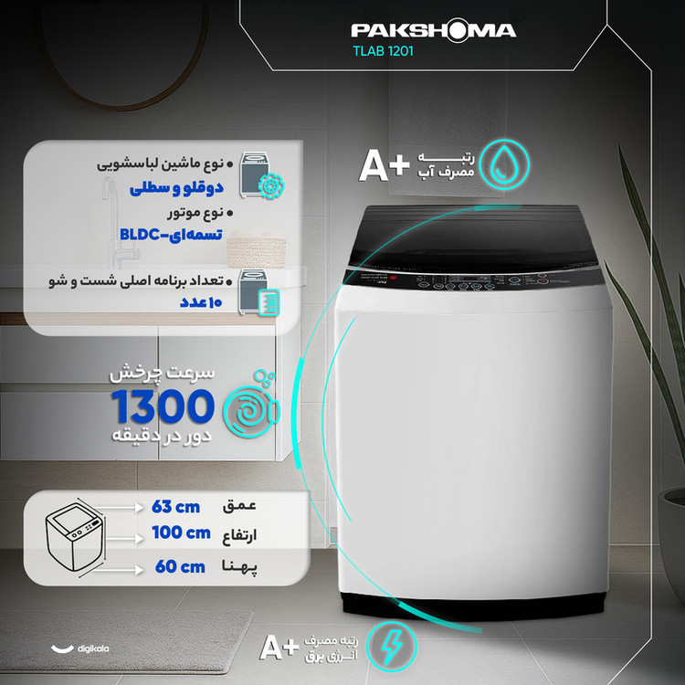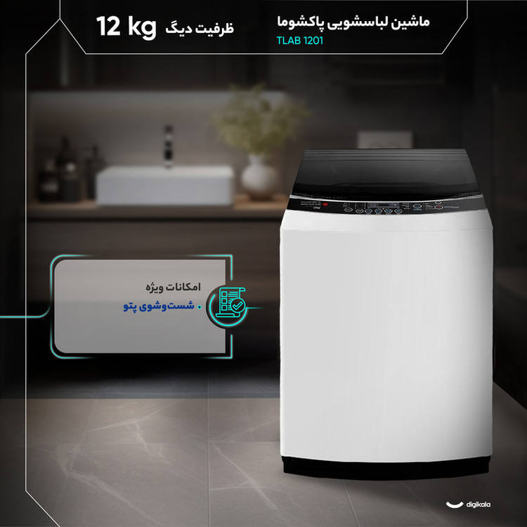 ماشین لباسشویی پاکشوما مدل TA12 ظرفیت 12 کیلوگرم، یکی از برترین ماشین لباسشوییهای موجود در بازار به حساب میآید. این محصول با طراحی خاصی تولید و به بازار عرضه شده است تا بتواند پاسخگو نیاز بسیاری از افراد باشد. این ماشین لباسشویی به طوری طراحی شده است که بتواند پاسخگو بسیاری از نیازهای مشتریان باشد. این ماشین، با ظرفیت 12 کیلوگرم و نوع مخزن درب بالایی که دارد؛ میتواند امکانات خوبی را در اختیار کاربران قرار بدهد. همچنین دور موتور تسمهای این ماشین به نوعی طراحی شده است که امکان 1300 دور در دقیقه را به راحتی برای موتور فراهم میکند. یکی دیگر از مزایا خرید ماشین لباسشویی پاکشوما مدل TA12 که باید به آن اشاره شود؛ این است که این ماشین برای شست و شو انواع لباسها طراحی شده است. از این رو، اگر شما برنامه شست و سو مناسب را انتخاب کنید؛ میتوانید بدون آنکه آسیبی به الیاف وارد شود، برای شست و شو هر نوع لباسی از این ماشین لباسشویی استفاده کنید. باید بدانید که برای این وسیله، 8 نوع برنامه اصلی + 2 برنامه کمکی متنوع ویژه شست و شو طراحی شده است که هر یک از آنها به لباسهای مختلف با الیاف و رنگهای گوناگون اختصاص یافتهاند.