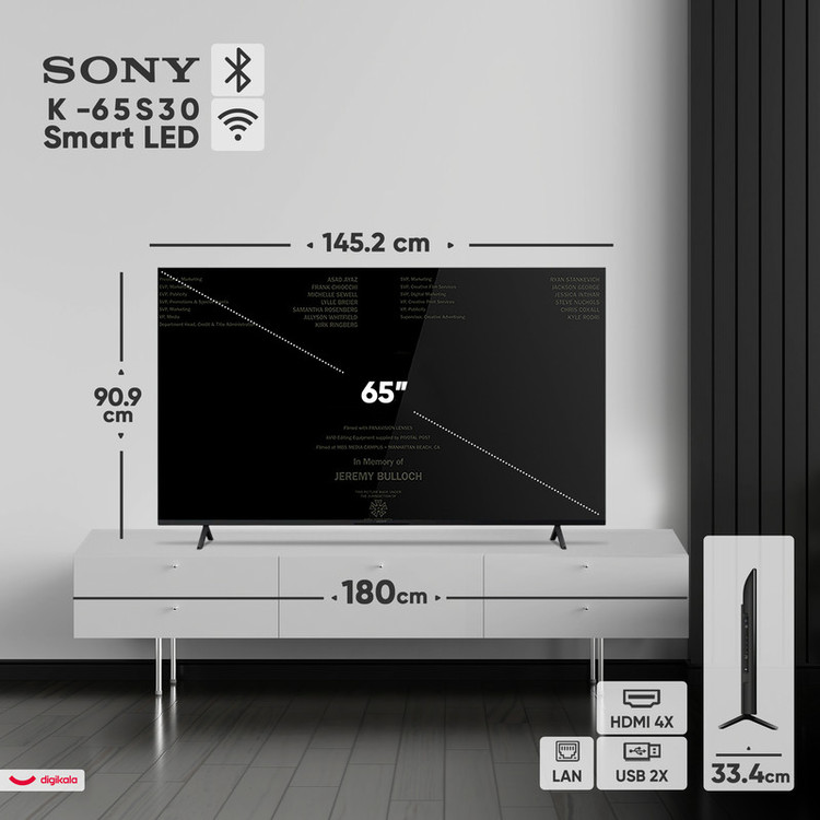 این تلویزیون مجهز به چهار پورت HDMI 2.0 و دو پورت USB برای اتصال به دستگاههای مختلف است و از وایفای 6 و بلوتوث 5.3 پشتیبانی میکند. همچنین، با گرید انرژی A و مصرف برق بهینه، از لحاظ مصرف انرژی هم عملکرد خوبی دارد. به طور کلی، سونی K-65S30 با کیفیت تصویر عالی، سیستم صوتی پیشرفته و امکانات هوشمند، انتخابی مناسب برای کسانی است که به دنبال یک تلویزیون با عملکرد مطلوب هستند.