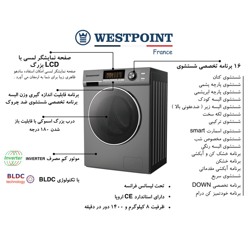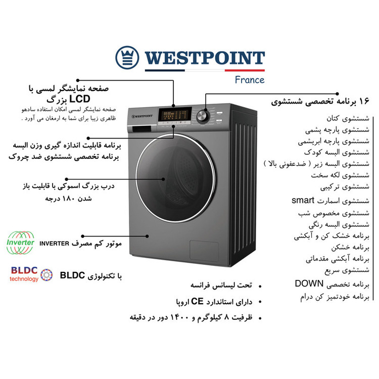 لباسشويیهاى سرى WMBIS وست پوينت با تكنولوژى BLDC و موتور كم مصرف اينورتر ايدهآلترين شستشو را براى شما به ارمغان مىآورد.