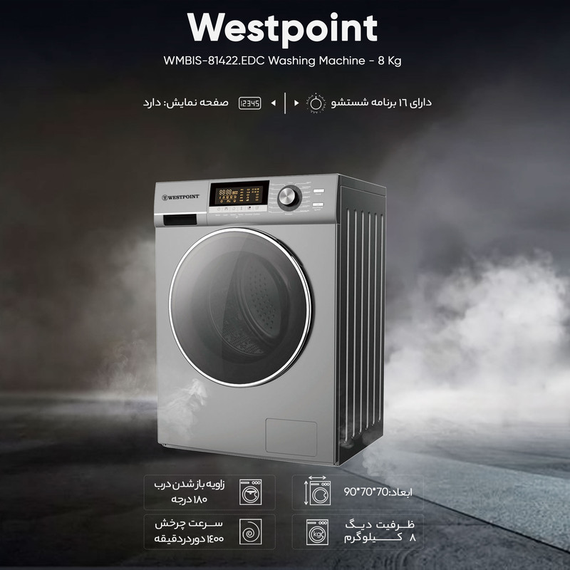 ماشین لباسشویی وست پوینت مدل WMBIS-81422.EDC ظرفیت 8 کیلوگرم