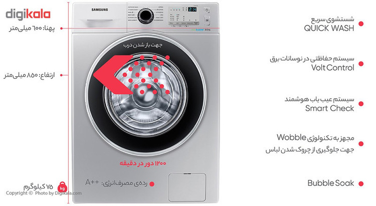 ماشین لباسشویی سامسونگ مدل Q1255 با ظرفیت 8 کیلوگرم ، یکی از لباسشوییهای شرکت سامسونگ است که از طراحی بسیار زیبا و مشخصات قابل توجهی از جمله ظرفیت مناسب و رتبه مصرف انرژی خوبی برخوردار است. این ماشین لباسشویی با ظرفیت 8 کیلوگرم میتواند در خانوادههای متوسط تا پرجمعیت مورداستفاده قرار گیرد. رتبه مصرف این دستگاه A++ است و مصرف انرژی پایینی را خواهد داشت. از دیگر قابلیتهای این دستگاه دارای سیستم شستشوی چندحالته است که با وجود یک ولوم کنترلی Jog Dial که روی این دستگاه تعبیه شده است، کاربر میتواند به راحتی دستگاه را برای شستشوی البسه مورد نظر تنظیم و استفاده نماید. کاهش مصرف انرژی با استفاده از هیتر سرامیکی در سری جدید لباسشویی های سامسونگ انجام می شود. از دیگر مشخصات این دستگاه سیستم حفاظتی در نوسانات برق بوده که مانع از خرابی دستگاه می شود. محافظت از الیاف با استفاده از دیگ الماسه ضد چروک ممکن شده است. برنامه خودکار شستشوی دیگ لباسشویی نیز موجب میگردد مصرفکننده دیگر نگران تمیزی دیگ که شاید کیفیت شستشوها را نیز تحت تأثیر قرار دهد نباشد. سیستم عیب یابی هوشمند و پیش شستشو با کف هم در مد ل Q1255سامسونگ لحاظ شده است. سامسونگ تولید و عرضه کننده محصولات با کیفیت در زمینه های مختلف از جمله لوازم خانگی برقی است. نوآوری، استفاده از مواد با کیفیت، قیمت مناسب و خدمات پس از فروش این شرکت، مخاطبین زیادی را به سمت خود کشانده و راضی نگه داشته است.