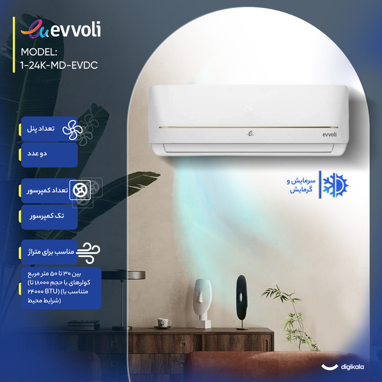 کولر گازی اسپلیت دیواری (Split) 24000 اینورتر ایوولی مدل 24 هزار اینورتر مدل EVDC-24K-MD-1