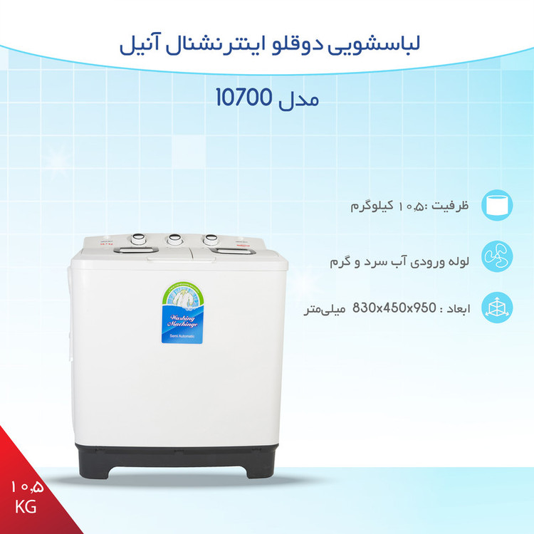 لباسشویی دوقلو اینترنشنال آنیل مدل 10700 ظرفیت 10.5 کیلوگرم