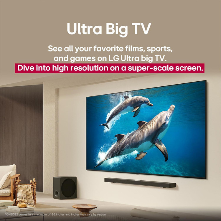 در بخش صدا، تلویزیون 55QNED82A6A به سیستم صوتی ۲۰ وات با اسپیکرهای دو کاناله مجهز شده که صدایی شفاف و متعادل را برای فضای نشیمن فراهم میکند. پشتیبانی از بلوتوث نسخه ۵.۰ امکان اتصال آسان به ساندبار یا هدفون بیسیم را نیز فراهم میسازد.