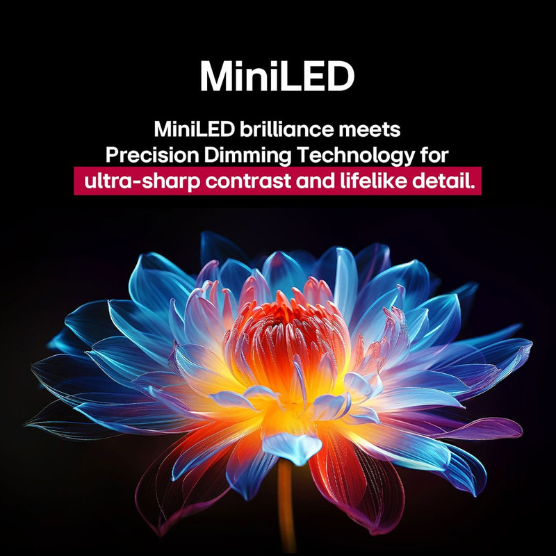 وجود ۴ درگاه HDMI، دو پورت USB 2.0، خروجی صوتی دیجیتال و گیرنده دیجیتال داخلی DVB‑T2، اتصال انواع دستگاههای جانبی را ممکن میسازد. قابلیتهایی مانند FreeSync، حالت HGiG، ضبط برنامه (PVR)، جدول پخش برنامه و طراحی تخت، این مدل را به انتخابی کامل و آیندهنگر برای خانههای مدرن تبدیل کرده است.