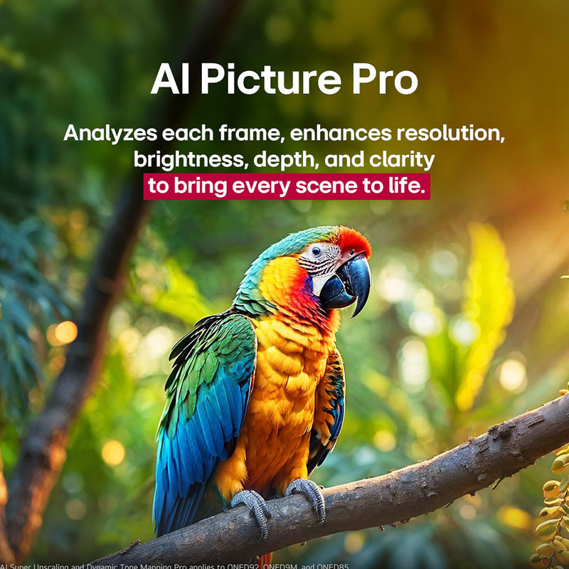 نرخ نوسازی ۱۲۰ هرتز تجربهای روان و بدون تاری را در صحنههای سریع، مسابقات ورزشی و بازیهای ویدیویی فراهم میکند. این تلویزیون از فرمتهای HDR10، Dolby Vision و HLG پشتیبانی میکند که موجب افزایش دامنه دینامیکی تصویر و نمایش رنگهایی زندهتر و طبیعیتر میشود. وجود حالت تصویری Dolby Vision و سیستم ارتقای کیفیت تصویر، باعث میشود حتی محتوای با کیفیت پایینتر نیز شفافتر و واقعیتر نمایش داده شود. پردازنده قدرتمند α8 AI Processor 4K Gen2 با استفاده از هوش مصنوعی، نور، رنگ و جزئیات تصویر را بهصورت هوشمند بهینه میکند.