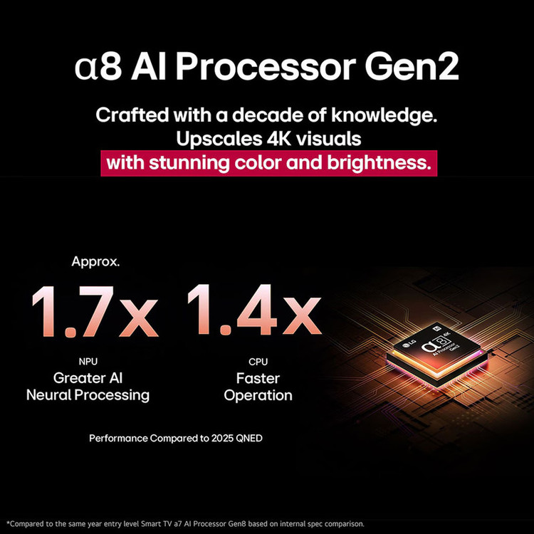 سیستم عامل WebOS نسخه ۲۵ محیطی سریع، روان و کاربرپسند را ارائه میدهد و امکان دسترسی به برنامههای آنلاین، مرورگر وب و خدمات اینترنتی را فراهم میکند. پشتیبانی از Wi‑Fi، بلوتوث نسخه ۵.۳ و ریموت کنترل هوشمند، کار با تلویزیون را بسیار ساده میکند.