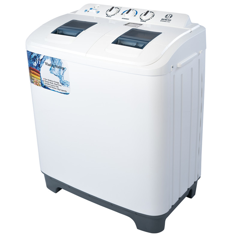 امروزه با توجه به ضرورت وجود ماشینهای لباسشویی در خانهها، انواع مختلفی از آنها به بازار عرضه میشود که هر کدام دارای قابلیتهای خاصی هستند. در یک طبقهبندی کلی ماشینهای لباسشویی را میتوان به سه دسته ماشینهای لباسشویی درب از بالای معمولی، ماشینهای لباسشویی دوقلو و ماشینهای لباسشویی درب از جلو تقسیم کرد. ماشین لباسشویی مدل BS980HC محصولی از برند «بنس» (Beness) است که بهصورت دو قلو طراحی و تولید شده است که ظرفیت مخزن آن 10 کیلوگرم است. این لباسشویی از ابعاد جمعوجوری برخوردار است و فضای زیادی را اشغال نمیکند. همچنین وزن پایین لباسشویی BS980HC سبب میشود تا جابهجایی آن راحتتر انجام شود. زاویه باز شدن درب این مدل 90 درجه است و از بالا باز میشود. برای این ماشین لباسشویی یک موتور شستشو با توان 180 وات در نظر گرفته شده است که سرعت چرخش آن تا ۱۴۰۰ دور در دقیقه میرسد. در قسمت بالای این محصول کلیدهایی برای تنظیم نحوه شستشو و تایمر قرار گرفته است.