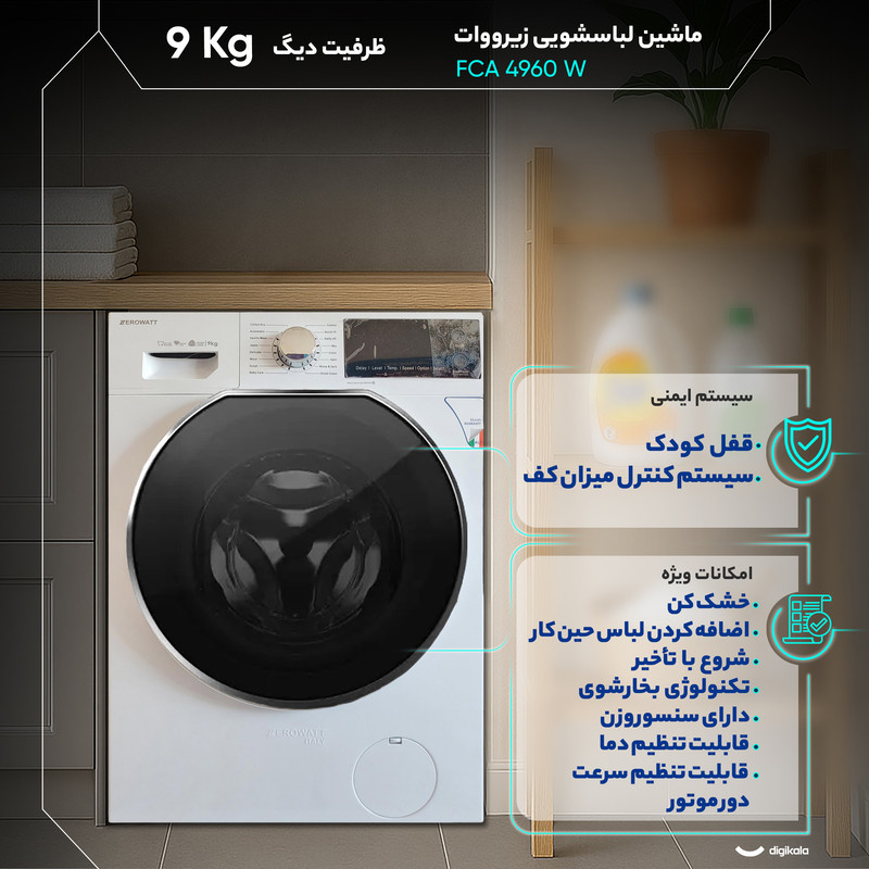 ماشین لباسشویی 9 کیلوگرم اتوماتیک زیرووات مدل FCA 4960 W