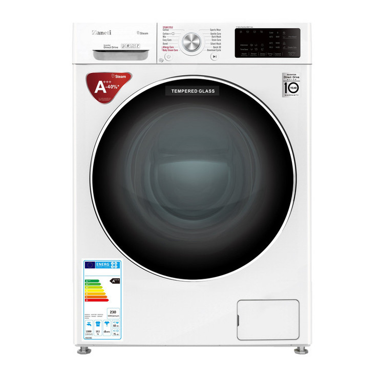 این ماشین لباسشویی ویژگیهایی دارد که این محصول را به یک انتخاب هوشمندانه برای هر خانهای تبدیل کرده است. امکاناتی از جمله: موتور هوشمند، سیستم عیبیاب هوشمند، رده مصرف انرژی A+++ آن و ...؛ تولید کننده این محصول، در طراحی ماشین لباسشویی 10,5 کیلویی زانِتی از فناوری جدید استفاده کرده است که در نتیجۀ آن تسمه از موتور حذف شده است. این محصول از موتور هوشمند دایرکت درایو بهره میبرد بدینصورت که موتور به صورت مستقیم به دیگ شستشو متصل شدهاست. از مزایای موتور اینورتر دایرکت درایو میتوان به کاهش مصرف انرژی و کاهش لرزش و صدا در زمان شستشوی لباس اشاره کرد.