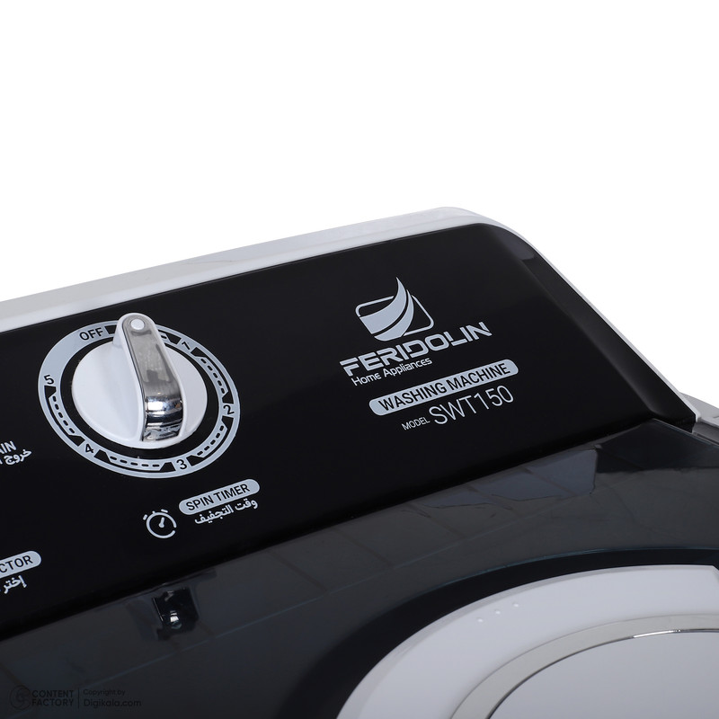 ماشین لباسشویی «فریدولین» (Feridolin) مدل «SWT150 » دستگاهی کارآمد برای استفادهی خانگی است. این دستگاه از دسته ماشین لباسشوییهای دوقلو است و مخزنی با ظرفیت 15 کیلوگرم دارد. لباسشویی مدل SWT150 مجهز به پروانهی قدرتمندی است که کیفیت خوب شستوشو را برای کاربر به ارمغان میآورد. پنل تنظیمات لباسشویی در قسمت بالایی قرار گرفته و دسترسی به آن آسان است. این پنل به صورت دکمههای چرخشی طراحی شده است و عملکرد سادهای دارد. علاوهبراین، انتخاب برنامه شستوشو دیگر ویژگی جالبتوجه این محصول است. ورودی آب گرم و سرد از دیگر ویژگیهای این محصول است. گفتنی است فریدولین، یک شرکت تولیدی صنعتی ایرانی است که پیش از 35 سال سابقه دارد. فعالیت اصلی فریدولین، در زمینهی تولید مینیواش و ماشینهای لباسشویی نیمهخودکار و خودکار در طراحها و مدلهای متنوع است. از ویژگیهای محصولات این شرکت میتوان به استفاده از فناوری روز در تولیدات، صرفهجویی در مصرف آب و مواد شوینده و کاهش زمان شستشوی لباسها اشاره کرد. این محصول دو حالت شستشو عادی یا همان Normal و Gentle در اختیارتان قرار میدهد.