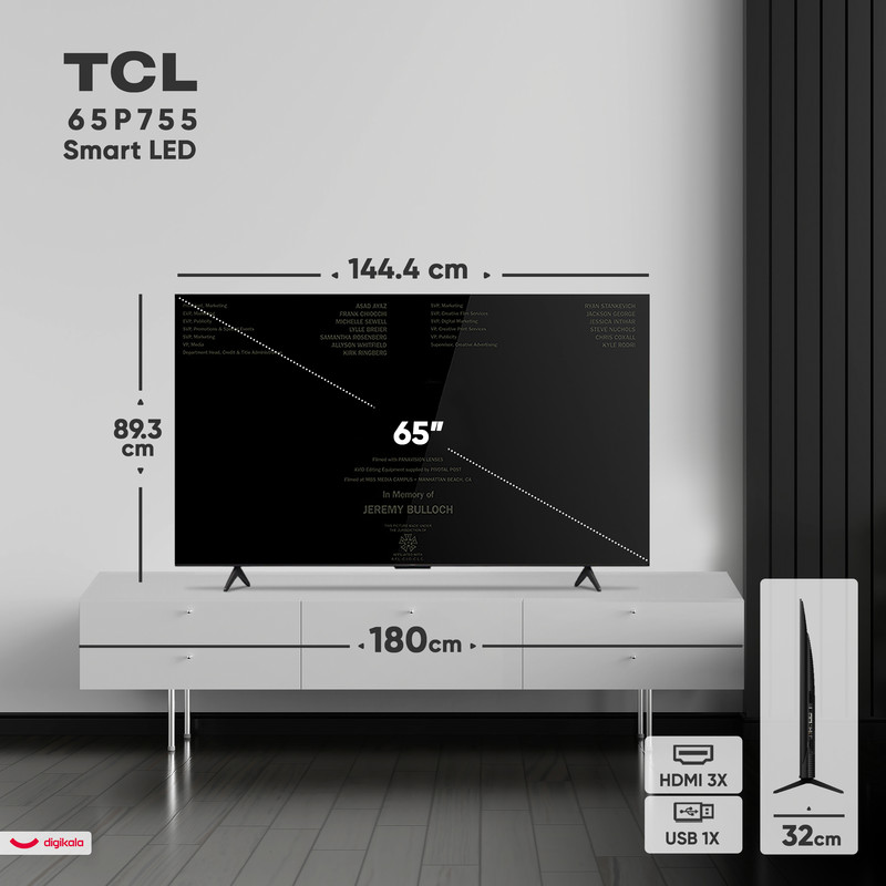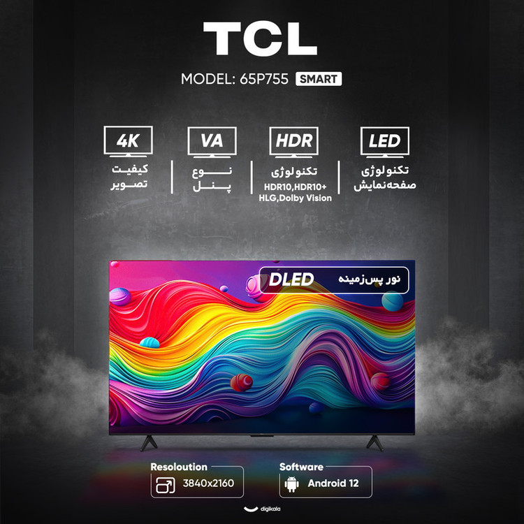 تلویزیون 65 اینچ تی سی ال مدل 65P755 یکی از محصولات پیشرفته و مدرن این برند مطرح است که با طراحی زیبا، کیفیت تصویر خیرهکننده و امکانات هوشمند گسترده، تجربهای متفاوت از تماشای فیلم و برنامهها را برای کاربران فراهم میکند. طراحی صفحه تخت با پایههای دوشاخهای، جلوهای شیک و مستحکم به تلویزیون میبخشد و امکان نصب روی دیوار نیز برای صرفهجویی در فضا وجود دارد. این تلویزیون از نمایشگر 4K Ultra HD با رزولوشن 3840×2160 پیکسل بهره میبرد که تصاویری بسیار واضح و دقیق ارائه میدهد. پنل VA با نور پسزمینه DLED و روشنایی 350 نیت باعث افزایش شفافیت و جزئیات تصویر میشود. همچنین پشتیبانی از فرمتهای HDR10، +HDR10، HLG و Dolby Vision تجربهای سینمایی با رنگهای زنده و کنتراست بالا فراهم میآورد. زاویه دید گسترده 178 درجه و نسبت کنتراست 6000:1 نیز نمایش تصاویر را از هر نقطه اتاق بهبود میبخشد. نرخ نوسازی تصویر 60 هرتز حرکتی روان و بدون لرزش در صحنههای سریع ایجاد میکند. در بخش صوتی، این مدل به سیستم صوتی با توان خروجی کلی 20 وات مجهز است. فناوریهای Dolby Atmos و DTS صدایی فراگیر و پرقدرت تولید میکنند که با تصاویر 4K هماهنگی کاملی دارند. خروجی صدای دیجیتال اپتیکال نیز برای اتصال به سیستمهای صوتی پیشرفته در نظر گرفته شده است. از نظر درگاهها، این تلویزیون دارای سه ورودی HDMI 2.1، یک پورت USB 3.0، ورودی آنتن، ورودی AV In، خروجی کامپوزیت، درگاه LAN و جک 3.5 میلیمتری صدا است. این تنوع اتصالات، دسترسی آسان به دستگاههای جانبی مختلف را برای کاربران ممکن میسازد. همچنین گیرنده دیجیتال داخلی DVB-T2 امکان دریافت مستقیم شبکههای دیجیتال را فراهم میکند. در بخش هوشمند، این مدل به سیستمعامل اندروید نسخه 12 مجهز است که رابط کاربری روان و امکانات متنوعی برای استفاده از اپلیکیشنها و سرویسهای آنلاین ارائه میدهد. حافظه داخلی 16 گیگابایتی برای نصب برنامهها و ذخیره محتوا در نظر گرفته شده و قابلیت اتصال به اینترنت، بلوتوث نسخه 5.2 و امکان اتصال موس و کیبورد از طریق USB نیز وجود دارد. قابلیتهایی مانند Time Shift، ضبط برنامه (PVR)، جدول پخش، ویرایش کانالها و پشتیبانی از زیرنویس فارسی استفاده روزمره را سادهتر و کاملتر میکنند.