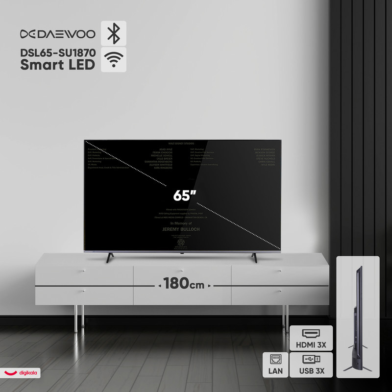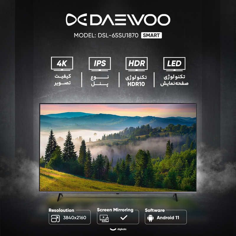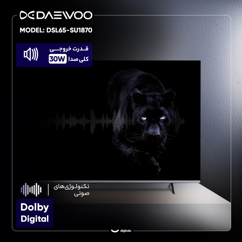 تلویزیون هوشمند ۶۵ اینچی دوو مدل DSL-65SU1870، یک مرکز سرگرمی تمامعیار برای خانههای مدرن است که با صفحهنمایش بزرگ و امکانات پیشرفته، تجربهی تماشایی فوقالعادهای ارائه میدهد. این دستگاه با طراحی تخت و ظاهری امروزی، به خوبی در فضای نشیمن شما جای میگیرد. نمایشگر LED این تلویزیون با پنل IPS و رزولوشن ۳۸۴۰ در ۲۱۶۰ پیکسل، تصاویری با وضوح 4K و زاویه دید گسترده به نمایش میگذارد. پشتیبانی از Dolby Vision و HDR10، عمق رنگ و کنتراست بینظیری را در محتوای سازگار تضمین میکند. جذابیت اصلی این مدل، نرخ بهروزرسانی ۱۲۰ هرتزی آن است که حرکاتی روان و بدون تاری را، بهخصوص در فیلمهای اکشن و بازیها، به ارمغان میآورد. سیستم صوتی ۳۰ واتی با پشتیبانی از Dolby Digital هم صدایی قدرتمند و شفاف را برای تکمیل این تجربهی بصری فراهم میکند. این تلویزیون هوشمند با سیستمعامل اندروید ۱۱، پردازندهی چهار هستهای و ۸ گیگابایت حافظه داخلی، دسترسی آسان به دنیای وسیعی از برنامهها و سرویسهای آنلاین، به همراه قابلیت Screen Mirroring را ارائه میدهد. سه درگاه HDMI که یکی از آنها برای پشتیبانی از 4K و سرعت ۱۲۰ هرتز مناسب است، دو درگاه USB، پورت LAN، وایفای و بلوتوث، امکانات اتصالی کاملی را برای انواع دستگاهها فراهم میکنند. گیرنده دیجیتال داخلی DVB-T2 هم شما را از دستگاههای اضافی بینیاز میسازد. دوو DSL-65SU1870 با ترکیب هوشمندانهی تصویر 4K روان، صدای باکیفیت و امکانات جامع اندروید، یک گزینهی عالی برای لذت بردن از فیلم، سریال و بازی در ابعادی بزرگ است.