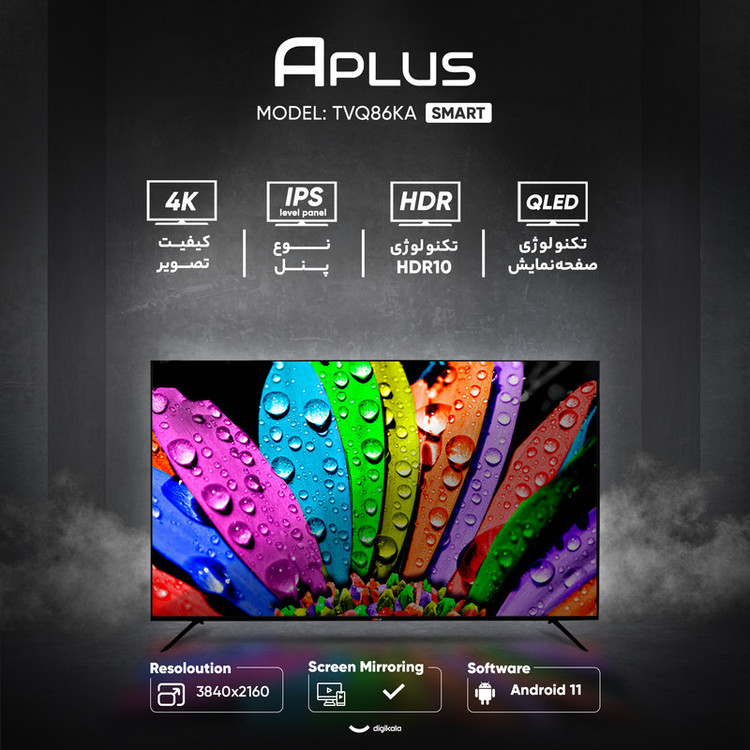 تلویزیون ۸۶ اینچ QLED هوشمند آپلاس مدل TVQ86KA برای کسانی طراحی شده که بهدنبال تجربهای سینمایی در خانه یا نمایشگر حرفهای برای محیطهای عمومی هستند. نمایشگر بزرگ با پنل IPS-level و فناوری QLED، تصاویری با وضوح 4K و رنگهایی شفاف و غنی ارائه میدهد. پشتیبانی از فرمت HDR10 باعث بهبود روشنایی و کنتراست در نمایش محتوای دارای دامنه دینامیکی بالا میشود و جزئیات تصویر را در تاریکترین و روشنترین بخشها بهخوبی نمایش میدهد.