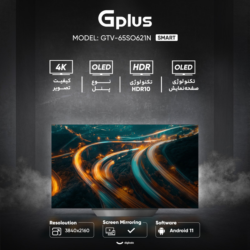 تلویزیون ۶۵ اینچ اولد هوشمند جی پلاس مدل GTV-65SO621N با طراحی تخت و بهرهگیری از تکنولوژی OLED، تصویری با کیفیت 4K و رزولوشن ۲۱۶۰ × ۳۸۴۰ ارائه میدهد و نسبت تصویر ۱۶:۹ در کنار توانایی تولید رنگ عمیق و روشنایی ۵۰۰ نیت موجب نمایش دقیق جزئیات در صحنههای تاریک و روشن میشود. ماهیت خودنوردهی پنل OLED و گستره رنگ ۹۸.۵ درصد جلوهای طبیعی و یکپارچه به تصویر میبخشد و حداکثر نرخ بهروزرسانی ۱۲۰ هرتز در ترکیب با زاویه دید گسترده عملکردی روان و پایدار در نمایش حرکات سریع ایجاد میکند. پشتیبانی از فرمتهای HDR۱۰، HLG و Dolby Vision نیز محدوده دینامیکی را افزایش داده و در ارتقای عمق رنگ و شفافیت مؤثر است. توان خروجی کلی صدا ۳۰ وات است و تکنولوژی Dolby Atmos همراه با قابلیت صدای فراگیر و سهبعدی، محیط صوتی گستردهای را ایجاد میکند و خروجی صوتی دیجیتال اپتیکال امکان اتصال به تجهیزات صوتی مکمل را فراهم میسازد. درگاههای ارتباطی شامل چهار درگاه HDMI با پشتیبانی از Simplink‑HDMI CEC، دو درگاه USB، پورت LAN، خروجی صوتی دیجیتال، یک رابط کامپوزیت و ورودی آنتن است و گیرنده دیجیتال داخلی DVB‑T۲ تماشای مستقیم شبکههای تلویزیونی را ممکن میکند. سیستمعامل Android نسخه ۱۱ با پردازنده چهار هستهای امکانات هوشمندی مانند شبکه بیسیم Wi‑Fi، بلوتوث، پخش آینهای، مرورگر وب، نصب برنامه و بازی، قابلیت اتصال به اینترنت و منوی فارسی را ارائه میدهد و قابلیت Time Shift و پخشکننده موسیقی نیز کارکرد دستگاه را تکمیل میکنند. گرید انرژی A+ و منبع تغذیه AC ۲۲۰ تا ۲۴۰ ولت مصرف دستگاه را در سطح بهینه نگه میدارند و شکل پایه دو شاخه در ابعاد ۱۴۵۰ × ۹۲۰ × ۱۲۰ میلیمتر ثبات مناسبی روی سطوح مختلف فراهم میکند. اقلام همراه شامل ریموت کنترل و دفترچه راهنما است و مجموعه امکانات تصویری، صوتی و هوشمند این مدل تجربهای کامل برای تماشای محتوا و بهرهگیری از قابلیتهای گیمینگ فراهم میآورد.