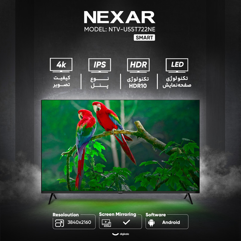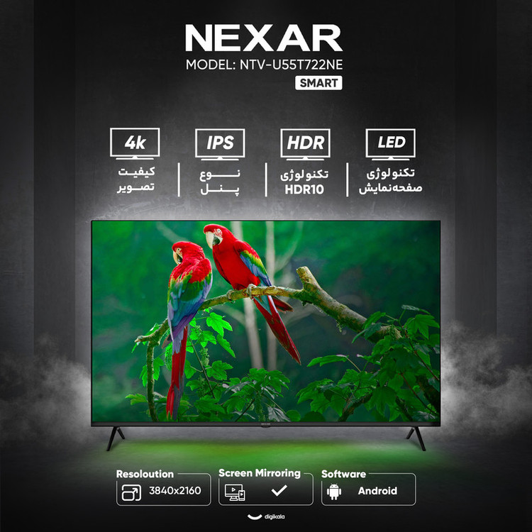 تلویزیون هوشمند نکسار مدل NTV-U55T722NE یک دستگاه ۵۵ اینچ با تمرکز بر قابلیتهای هوشمند و کیفیت تصویر ۴K است. این تلویزیون رزولوشن ۲۱۶۰ × ۳۸۴۰ را با نرخ بهروزرسانی استاندارد ۶۰ هرتز ارائه میدهد. استفاده از پنل IPS level به همراه تکنولوژی LED تضمینکننده زاویه دید گسترده و رنگهای نسبتاً پایداری است. این مدل از فرمت HDR10 پشتیبانی میکند که کیفیت بصری محتوای سازگار را بهبود میبخشد.