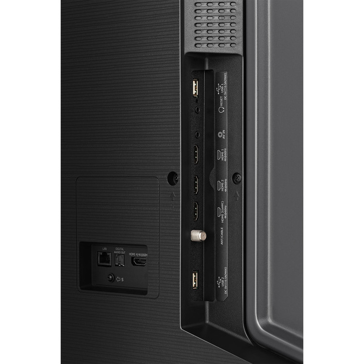 در بخش صوتی، این مدل با توان خروجی ۱۴ وات و پشتیبانی از DTS Virtual:X و Dolby Audio صدایی با تفکیک مناسب، میدان صوتی گسترده و وضوح کافی در گفتار ارائه میکند. مجموعه درگاهها شامل ۳ پورت HDMI 2.0، یک USB 2.0، ورودی کامپوزیت، خروجی اپتیکال، جک ۳.۵ میلیمتری، ورودی آنتن و درگاه LAN است؛ همچنین ارتباطات بیسیم از طریق Wi‑Fi 802.11ac و بلوتوث 5.0 در دسترس قرار دارد.