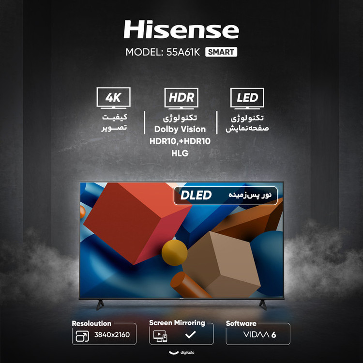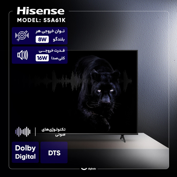 تلویزیون ۵۵ اینچ ال ای دی هوشمند هایسنس مدل 55A61K یک نمایشگر ۴K کارآمد برای کاربران خانگی است که به دنبال کیفیت تصویر مناسب، امکانات هوشمند کاربردی و طراحی مدرن هستند. این مدل با رزولوشن ۲۱۶۰ × ۳۸۴۰ پیکسل و نسبت تصویر ۱۶:۹، تصویری شفاف و دقیق ارائه میدهد و استفاده از پنل LED با نور پسزمینه DLED روشنایی یکنواختی ایجاد میکند. پشتیبانی از فرمتهای Dolby Vision، HDR10، +HDR10 و HLG موجب بهبود کنتراست و افزایش جزئیات در صحنههای روشن و تاریک میشود و کیفیت تماشای فیلمها و سریالها را ارتقا میدهد. نرخ بهروزرسانی ۶۰ هرتز نیز برای استفاده روزمره و پخش محتوا کاملاً کافی است.