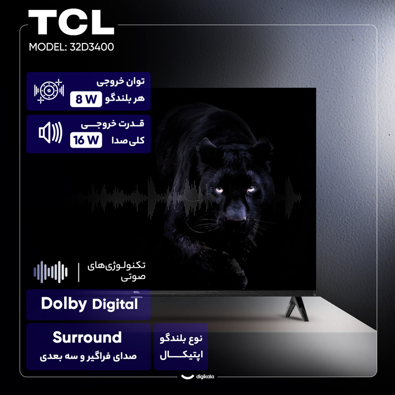 تلویزیون تی سی ال مدل32D3400 یکی از گزینههای اقتصادی و کاربردی در دسته تلویزیونهای 32 اینچی است که با ویژگیهای مناسب خود، انتخابی ایدهآل برای فضاهای کوچک مانند اتاق خواب یا محیطهای کاری محسوب میشود. این مدل با رزولوشن HD و نسبت تصویر 16:9، کیفیت تصویری واضح و شفاف را ارائه میدهد. همچنین، فناوری VA در پنل آن باعث افزایش دقت رنگ و کنتراست تصویر شده است. این تلویزیون دارای دو بلندگوی 8 واتی است که در مجموع توان خروجی صدای 16 وات را فراهم میکند. پشتیبانی از فناوریDolby Stereo و تکنولوژی صدای فراگیر، تجربه صوتی مطلوبی را برای کاربران فراهم میکند. اسپیکرهایBOX این تلویزیون هم به بهبود وضوح صدا کمک میکنند. درگاههای ارتباطی متنوع این مدل شامل دو پورت HDMI، یک پورت USB 2.0 و یک ورودی کامپوزیت است که امکان اتصال دستگاههای مختلف مانند کنسولهای بازی، فلش مموری و گیرندههای دیجیتال را فراهم میکند. علاوه بر این، تلویزیون از قابلیتهای کاربردی مانند Time Shift برای توقف و پخش مجدد برنامهها، PVR برای ضبط محتوا، و EPG جهت نمایش جدول پخش برنامهها پشتیبانی میکند. از دیگر ویژگیهای این مدل میتوان به زاویه دید 178 درجه، رفرش ریت 60 هرتز و روشنایی 220 نیت اشاره کرد که تجربه بصری قابل قبولی را ارائه میدهد. مصرف انرژی این تلویزیون در حالت عادی 65 وات است که با توجه به گرید انرژی A، عملکردی بهینه دارد. در مجموع، تلویزیون تی سی ال32D3400 با امکاناتی مناسب، کیفیت تصویر خوب و قیمت مقرون به صرفه، گزینهای مطلوب برای افرادی است که به دنبال یک تلویزیون ساده اما کارآمد هستند.