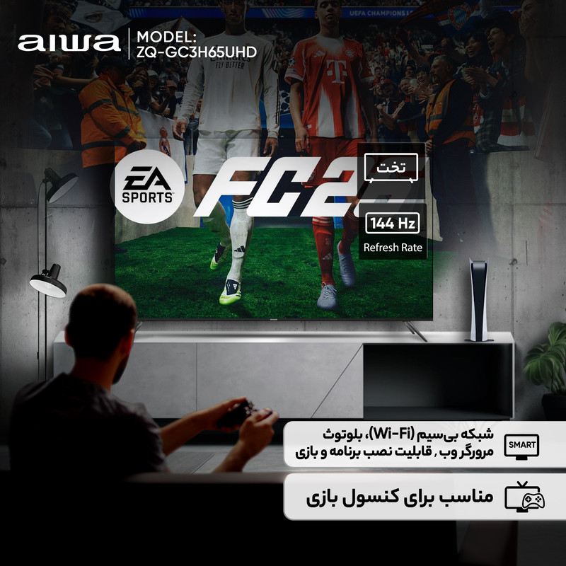 تلویزیون ۶۵ اینچ کیو ال ای دی هوشمند آیوا مدل ZQ‑GC3H65UHD با طراحی تخت و بدنهای مناسب برای کاربری خانگی و گیمینگ، تصویری مبتنی بر تکنولوژی QLED ارائه میدهد که در ترکیب با کیفیت تصویر 4K، رزولوشن ۴۳۲۰ × ۷۶۸۰ و نسبت تصویر ۱۶:۹ جزئیات دقیق، رنگهای پویا و روشنایی کنترلشده را در سطح مطلوب نمایش میدهد و حداکثر نرخ بهروزرسانی ۱۴۴ هرتز باعث میشود صحنههای سریع در فیلمها و بازیها با نرمی بالا و بدون تاری حرکت بازتولید شوند. پشتیبانی از فرمتهای HDR۱۰ و Dolby Vision دامنه دینامیکی گستردهتری ایجاد میکند و پردازنده چهار هستهای دستگاه امکان پردازش روان رابط کاربری و اجرای برنامهها را فراهم کرده است. توان خروجی کلی صدا ۲۰ وات است و با بهرهگیری از خروجی صوتی دیجیتال، جک ۳.۵ میلیمتری و ورودی AV In امکان اتصال تجهیزات صوتی مختلف فراهم میشود. مجموعه درگاهها شامل سه درگاه HDMI، دو درگاه USB با نسخه USB ۲.۰، پورت LAN، ورودی آنتن و خروجی صوتی دیجیتال است و گیرنده دیجیتال داخلی DVB‑T۲ امکان دریافت مستقیم شبکههای تلویزیونی را فراهم میکند. سیستمعامل Android نسخه ۱۱ با حافظه داخلی ۱۶ گیگابایت اجرا میشود و قابلیتهایی مانند شبکه بیسیم Wi‑Fi، بلوتوث، مرورگر وب، پخش آینهای، نصب برنامه و بازی و ضبط برنامه PVR را در اختیار قرار میدهد و اتصال به اینترنت در این مدل بهصورت پایدار انجام میشود. گرید انرژی A و منبع انرژی AC ۲۲۰ تا ۲۴۰ ولت با فرکانس ۵۰ تا ۶۰ هرتز باعث مصرف بهینه دستگاه شده و شکل پایه دو شاخه است که استقرار تلویزیون را روی میز تلویزیون تسهیل میکند. اقلام همراه شامل ریموت کنترل و دفترچه راهنما است و مدل ZQ‑C۳H GRAY در سایز ۶۵ اینچ عرضه میشود و مجموعه این ویژگیها این تلویزیون را به گزینهای مناسب برای تماشای محتوای باکیفیت، اجرای بازی و استفاده روزمره تبدیل میکند.