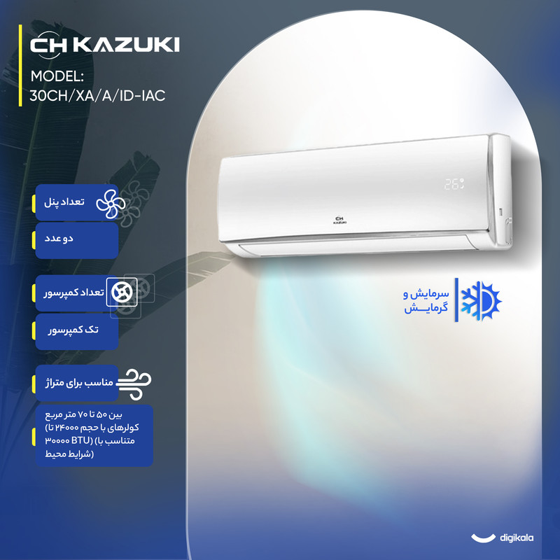 کنترل کامل تنظیمات دما و فن , تنظیم تایمر از طریق ریموت , نمایشگر دیجیتال روی ریموت , تنظیم جهت پرتاب باد از راه دور , قابلیت تنظیم حالت توربو از ریموت , طراحی ارگونومیک و سبک