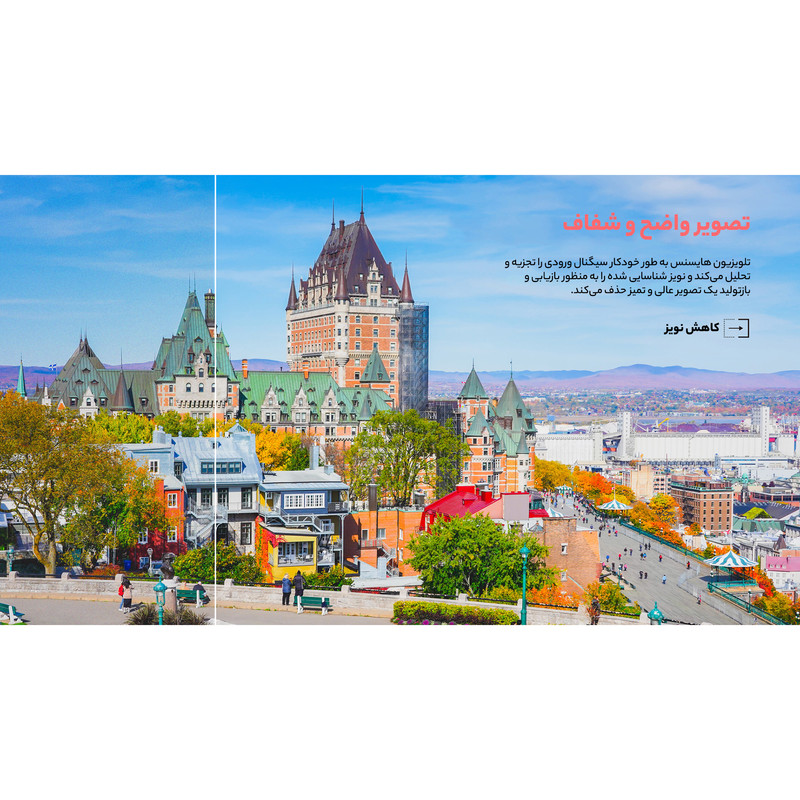 صفحهنمایش ۴۳ اینچی DLED با رزولوشن Full HD، تصاویری با جزئیات کافی و روشنایی مناسب (۲۵۰ نیت) ارائه میدهد. نرخ نوسازی ۶۰ هرتز و عمق رنگ ۸ بیتی، برای تماشای فیلم و سریال و کاربریهای روزمره کافی است.