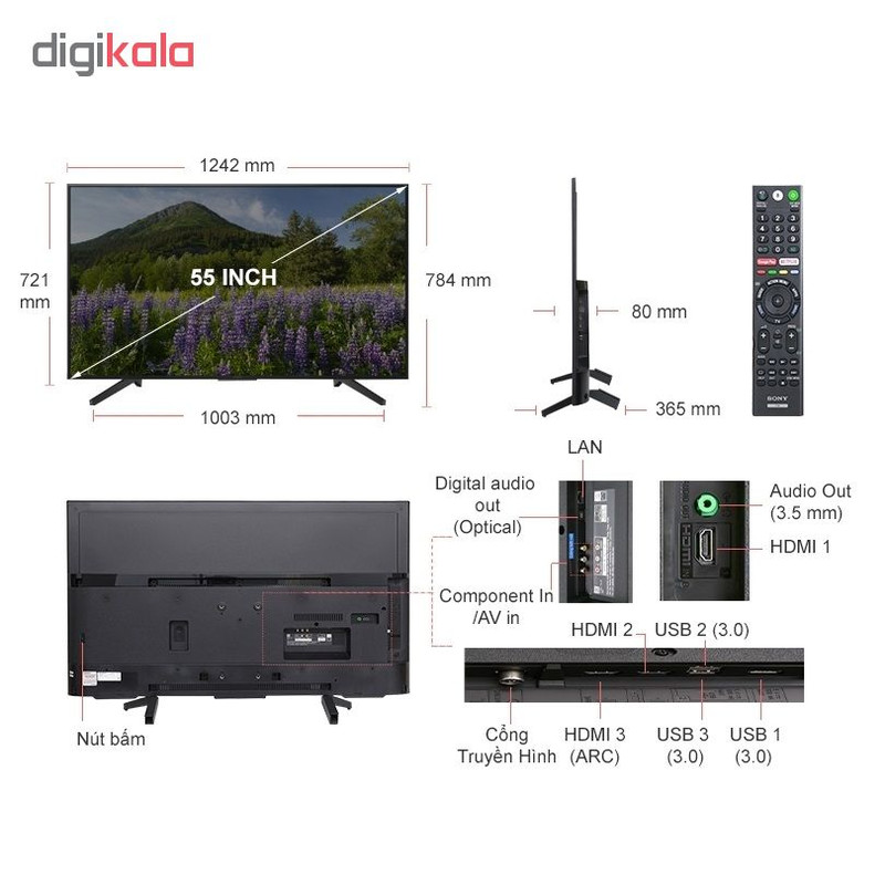 تلویزیون ال ای دی سونی مدل KD-55X7000F سایز 55 اینچ تصویر را با کیفیت 4K نمایش میدهد و قابلیتهایی دارد که به بهتر شدن کیفیت تصویر کمک میکنند. این تلویزیون به فناوری X-Reality Pro مجهز است. این فناوری در واقع برای بهبود تصاویر کیفیت پایین برای نمایش روی صفحه نمایشی با روزلوشن بالا طراحی شده است. فناوری دیگر Dynamic Contrast Enhancer نام دارد که کنتراست تصویر را بهبود بخشیده و باعث میشود تصاویر واقعیتر به نظر برسند. دو فناوری دیگر هم با عناوین Motion Flow XR 200 وLive Colour برای بهبود حرکت اجسام در تصویر و پالت رنگ تلویزیون طراحی شدهاند. سیستم صوتی مدل KD-55X7000F از نوع دو کاناله است و توان خروجی آن 20 وات است. باتوجه به سایز این مدل و این که برای سالنهای کوچک و متوسط مناسب است، این سیستم صوتی میتواند نیازهای کاربر را به خوبی برطرف کند. البته سیستم صوتی دستگاه از Dolby Digital، Dolby Digital Plus، Dolby پشتیبانی میکند. مدل KD-55X7000F به درگاههای USB، HDMI و کامپوزیت مجهز است و قابلیت اتصال به Wifi نیز دارد.