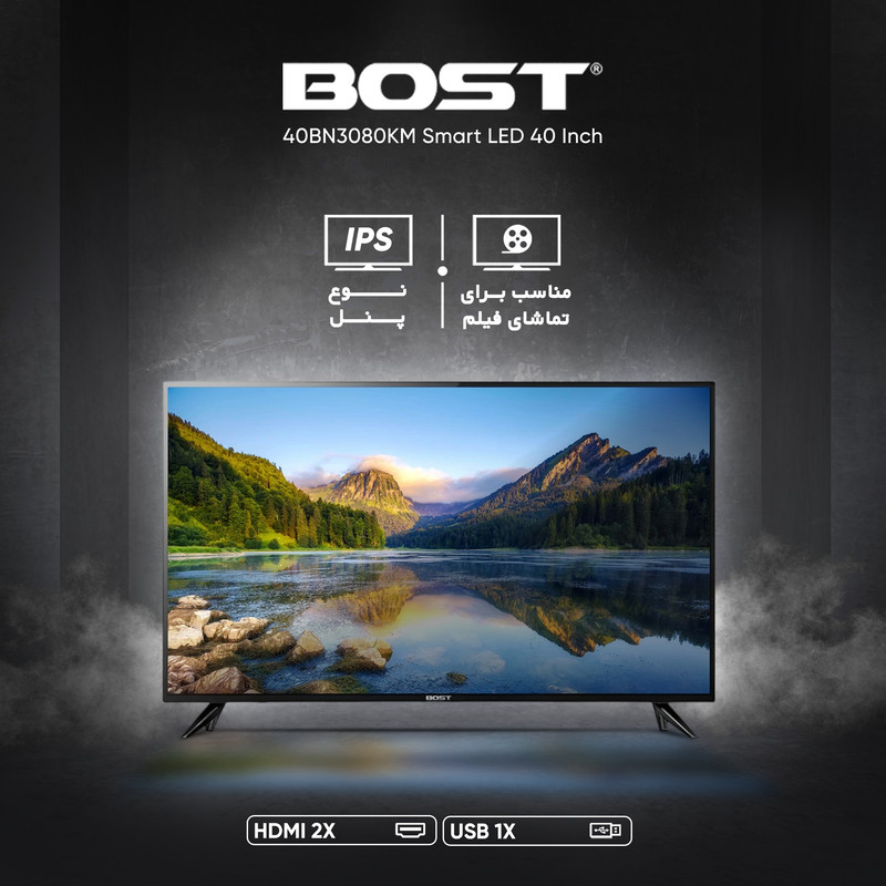 تلویزیون ال ای دی بست 40 اینچ مدل 40BN3080KM یکی از محصولات باکیفیت و نام آشنای برند BOST است که با کیفیت FULL HD به فروش میرسد. از اینرو تصاویری واضح و شفاف را به نمایش میگذارد. بهطورکلی از ویژگیهای تلویزیون بست BN3080KM40 میتوان به صدای دیجیتال optical، نرخ بهروزرسانی تصویر 60 هرتز، رزولوشن 2 میلیون پیکسل، زمان پاسخدهی 5 میلیثانیه و قابلیت ضبط روی حافظه خارجی (pvr) اشاره کرد. در طراحی مدل 40BN3080KM ضخامت slim od35 در نظر گرفته شده است که به طراحی اسلیم شهرت دارد. این قابلیت در کنار پایههای V شکل به جذابیت دکوراسیون tv room کمک میکند. همچنین زاویه دیدی 178 درجه در این تلویزیون طراحی شده است که امکان مشاهده صفحه نمایشگر از همه زوایا را ممکن میسازد. از ویژگیهای دیگر تلویزیون 40 اینچ بست باید به گیرنده دیجیتال داخلی (DVBT2) اشاره کنیم. این دستگاه در بخش صوتی دارای سیستم صوتی دالبی و قدرت صدای 16 واتی است که صدای رسا و واضحی را پخش میکند. علاوهبراین تلویزیون بست باید قابلیت TIME SHIFT را نام ببریم که با کمک آن میتوان اقدام به ضبط برنامهها روی حافظی جانبی کرد. در نتیجه حتی اگر در خانه نباشید، تصاویر و صحنههای پخش شده را از دست نخواهید داد. سیستم MHL موبایل، پشتیبانی از شبکههای HD صدا و سیما و جستوجوی خودکار کانالها از قابلیتهای دیگر ال ای دی بست شناخته میشود.
