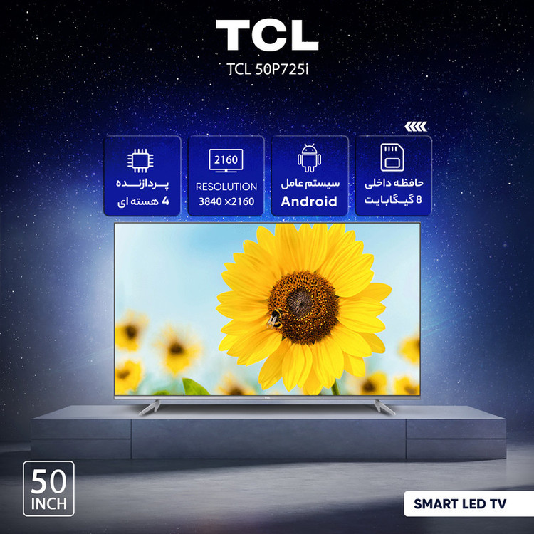تلوزیون ال ای دی هوشمند تی سی ال مدل 50P725i سایز 50 اینچ