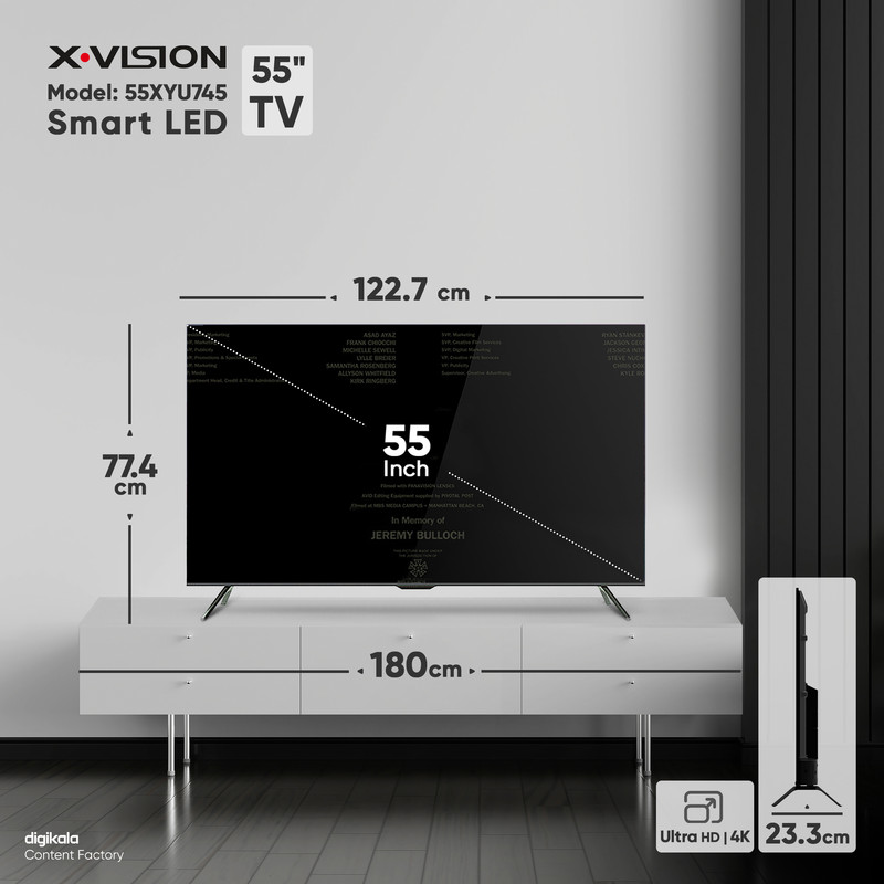 تلویزیون هوشمند ال ای دی ایکس ویژن مدل 55XYU745 با سایز 55 اینچ و کیفیت تصویر Ultra HD – 4K تجربهای بینظیر از تماشای فیلم و برنامههای تلویزیونی را به ارمغان میآورد. این تلویزیون با استفاده از فناوری HDR10 تصویری با وضوح بالا و رنگهای زنده ارائه میدهد. صفحه نمایش تخت IPS با زاویه دید گسترده 178 درجه، تماشای تصاویر را از هر نقطهای لذتبخش میکند. روشنایی 330 نیت آن نیز کیفیت تصویر را در هر شرایطی حفظ میکند. با توان خروجی کلی صدا 20 وات، دو بلندگوی 10 واتی، استاندارد صوتی Dolby صدایی شفاف و فراگیر ارائه میشود. این تلویزیون هوشمند با 16 گیگابایت حافظهی داخلی و 1.5 گیگابایت رم، امکان اجرای برنامههای مختلف را فراهم میکند. همچنین، این تلویزیون دارای ۳ درگاه HDMI یک درگاه کامپوزیت و ۲ درگاه USB است که امکان اتصال به دستگاههای مختلف را فراهم میکند. قابلیتهای متنوعی مانند ضبط برنامهها، ماشین زمان، جدول برنامهها و بلوتوث تجربه کاربری استفاده از این تلویزیون را ارتقا میدهند. در نهایت طراحی زیبا و وزن مناسب، این تلویزیون را به گزینهای عالی برای هر خانهای تبدیل کرده است.