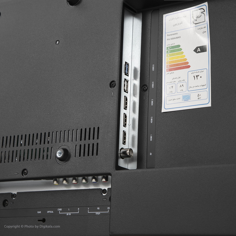 تلویزیون مدل PA-50SA3643 محصولی از برند پانورامیک (Panoramic) است که با سایز 50 اینچ به بازار عرضه شده است. این تلویزیون هوشمند است و بهصورت پیشفرض از اندروید نسخه 7.1.1 بهره میبرد. برای این مدل از برند پانورامیک، یک پردازنده مرکزی 8 هستهای در نظر گرفته شده است. تصویرتلویزیون PA-50SA3643 با کیفیت تصویر Ultra HD - 4K است. این تلویزیون دارای دو درگاه USB است که میتوان از طریق آن فایلهای صوتی و تصویری را از طریق فلش و هارد اکسترنال روی تلویزیون اجرا کرد و یا برنامههای تلویزیونی را روی آنها ذخیره کرد. این تلویزیون همچنین از درگاههای کامپوننت، کامپوزیت و 3 درگاه HDMI هم بهره میبرد که بسیار کاربردی است. سیستم صوتی تلویزیون دو کاناله است و توان خروجی کلی آن برابر با 20 وات است. گیرنده دیجیتال داخلی، شما را از خرید یک دستگاه جداگانه معاف میسازد و میتوانید از شبکههای دیجیتالی صداوسیما بهراحتی استفاده کنید. برای سهولت در استفاده از این مدل، به همراه آن یک عدد ریموت کنترل هوشمند ارائه میشود. بهرهگیری از صفحهنمایش Ultra HD - 4K، فناوری HDR10+ و قابلیت ضبط تصاویر در حافظه خارجی به ارزش خرید این محصول افزوده است.