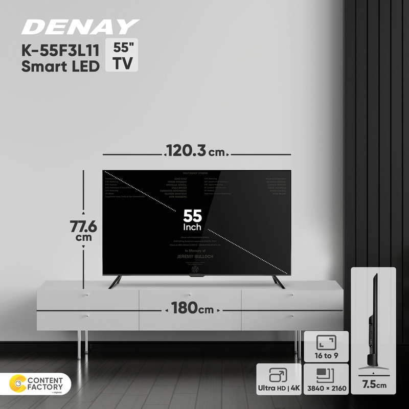 تلويزيون ال ای دی هوشمند دنای 55 اینچ مدل K-55F3L11 از مدل های هوشمند شرکت DENAY می باشد. استفاده از سرویس های اینترنتی به دلیل وجود تراشه ای است که در تلویزیون تعبیه شده است و شما از اموری که در کامپیوتر انجام می دهید را در صفحه نمایش بزرگتر و با کیفیت تر انجام دهید. با استفاده از تلويزيون دنای 55 اینچ مدل K-55F3L11 می توانید ویدیوها را در سایت های اشتراک گذاری مانند Youtube مشاهده کنید ، صفحات وب را باز کرده و نمایش دهید، ایمیل های خودرا چک کنید، به شبکه های اجتماعی متصل شوید و از سایر سرویس های اینترنتی استفاده کنید.حتی این تلویزیون قادر است تا فایل های اسناد Word و یا Exel را ایجاد و یا نمایش دهید. تلويزيون 55 اینچ دنای مدل K-55F3SL قابلیت اتصال وب کم و اجرای نرم افزار Skype و امکان مکالمه ویدیویی را داشته باشید. از دیگر سیستم ها کیفیت تصاویر در این تلویزیون از نوع 4K می باشد و کیفیت بالایی در نشان دادن رنگها و جزئیات تصاویر دارد. رزولوشن تصویر در این محصول 3840×2160 می باشد و از بالاترین رزولوشن های موجود در بازار فناوری می باشد. پشتیبانی از کیفیت HDR از دیگر مشخصه های مهم تصویری در این محصول می باشد ، به این معنی که محدوده دینامیکی بالا که دقت رنگ ها در ان در بالاترین سطح افزایش می باشد.