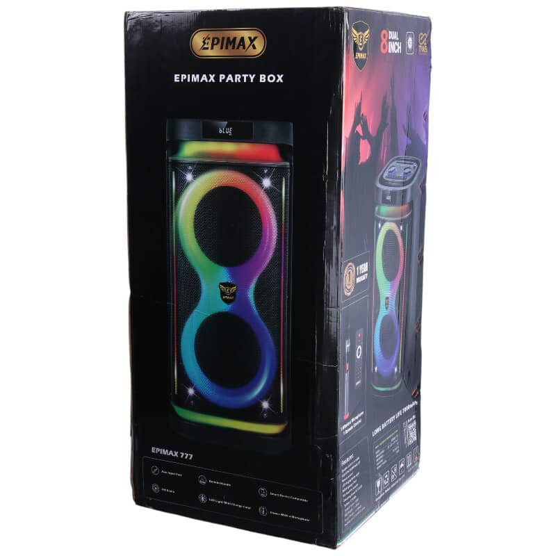 اسپیکر بلوتوثی اپیمکس مدل EPIMAX-777 یکی از محصولات محبوب برند اپیمکس است. این اسپیکر با طراحی چمدانی، دو بلندگوی ۸ اینچی، نورپردازی RGB و باتری قدرتمند، تجربهای متفاوت از شنیدن موسیقی را برای کاربران فراهم میکند. اگر به دنبال اسپیکری هستی که در مهمانیها، سفرها یا استفاده روزمره عملکردی حرفهای داشته باشد، EPIMAX-777 انتخابی عالی است.