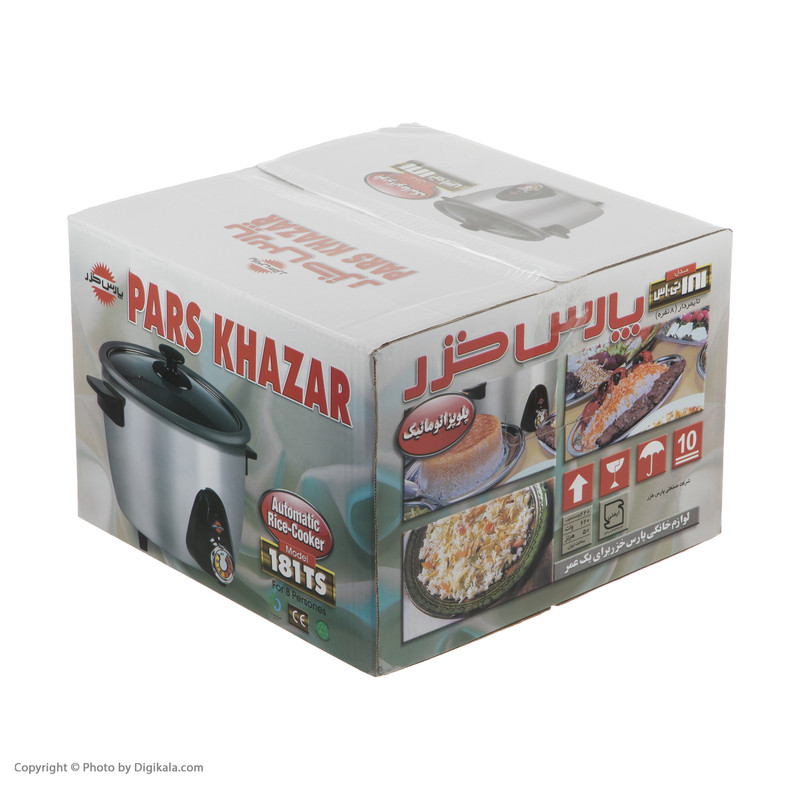 پلوپز پارس خزر RC-181TS یکی از محصولات شرکت پارسخزر است که از طراحی کلاسیک و زیبا، گنجایشی مناسب و کیفیتی مطلوب بهره میبرد. قابلیت پخت برنج با درجات مختلف رنگ تهدیگ از مشخصات این محصول است که میتواند امکان پخت برنج معمولی یا با تهدیگی طلایی ، یا ترد را میسر ساخته و توجه سلایق و ذائقه ما ایرانیان را هم بهخوبی به خود جلب کند. این دستگاه از ظرف تفلون نچسب با قابلیت جدا شدن، بدنه استیل آبکاریشده، و دربی از جنس استیل ضدزنگ بهره میبرد که دارای دوام و کیفیتی قابلتوجه است. بر روی پلوپز پارسخزر RC-181TS پیچ تنظیم درجه پخت یا همان تایمر و همچنین یک نشانگر قرار گرفته که به سهولت استفاده از دستگاه میافزاید. این محصول بهمنظور تأمین ایمنی استفاده هم از امکانات و مشخصاتی مناسب برخوردار است که عبارت است از استفاده از کابل نسوز جهت افزایش ایمنی، و بهرهمندی از فیوز حرارتی بهمنظور ایمنی مضاعف و جلوگیری از خطرات احتمالی. پخت برنج که تقریباً در تمامی وعدههای اصلی غذای ما ایرانیان استفاده میشود زحمت کمی ندارد و امروزه استفاده از پلوپزهای برقی یکی از بهترین گزینهها برای پخت این غذای پرطرفدار است چراکه نهتنها زحمت و زمان کمتری نیاز دارد، بلکه ازنظر کیفیت نیز چیزی کم ندارد. طراحی کلاسیک و زیبا، کیفیت دیگ، پیچ تنظیم درجه پخت بر اساس رنگ تهدیگ، و گنجایش مناسب، پلوپز RC-181TS را به یکی از مطلوبترین گزینهها برای خانوادههای پرجمعیت یا با جمعیت متوسط تبدیل میسازد.