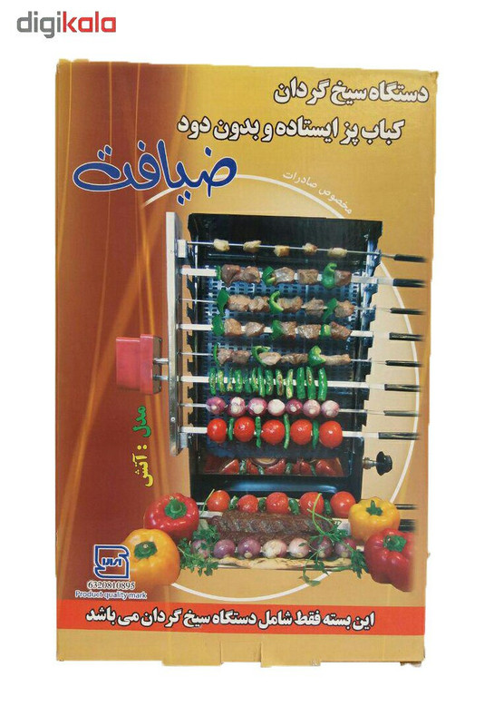 سیخ گردان برقی ضیافت یکی از قطعات کباب پز برقی ایستادهی این تولیدکننده است که فقط به همراه این محصول مورد استفاده واقع میشود. این دستگاه به تنهایی کاربردی ندارد و فقط باید روی دستگاه نصب شود تا بتوانید از آن استفاده کنید. پس از نصب موتور دستگاه به سطح سیخ گردان و اتصال سیخها به آن میتوانید دستگاه را به برق بزنید تا سیخهای کباب بچرخند. همراه این سیخ گردان 20 عدد سیخ کباب ارائه میشود که ده تای باریک و ده تای آن پهن هستند. این کالا به خوبی در کنار کبابپز ضیافت قرار گرفته و از سوختن کبابها و خرابشده غذا جلوگیری میکند. با خرید این دو دستگاه در کنار یکدیگر، درست کردن کباب به سادگی ممکن میشود و نیازی به سر زدن مداوم به کباب ها نخواهید داشت. کیفیت ساخت این کالا قابلقبول بوده و باعث میشود بتوانید در مدتی طولانی از آن استفاده کنید.
