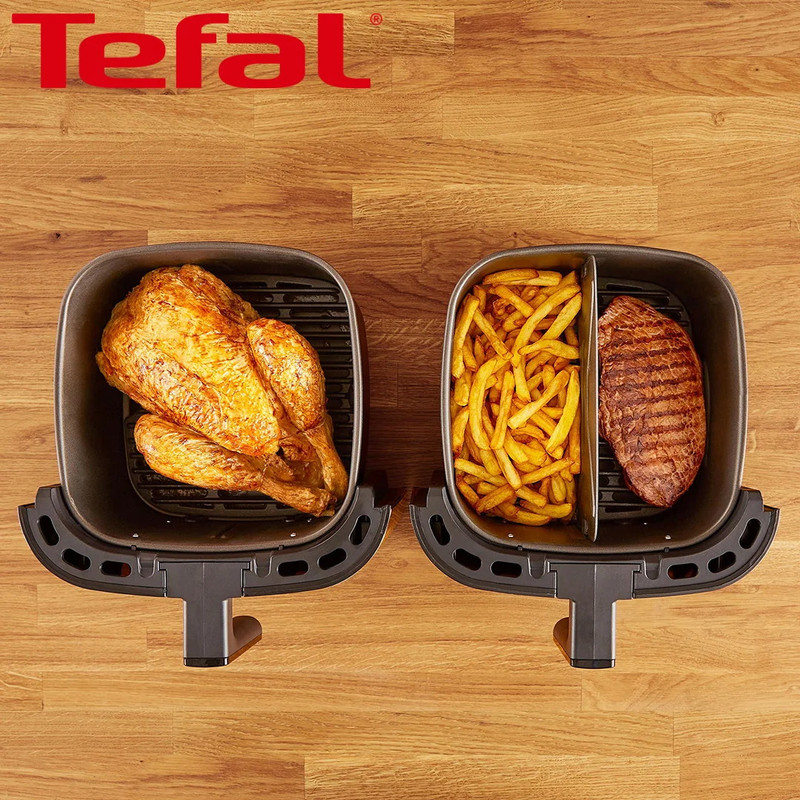 فناوری Extra Crisp: تعادل کامل دما و جریان هوای گرم برای ارائه نتایج ترد و طلایی بدون روغن اضافه، برنامه پخت: سیب زمینی سرخ شده – ناگت – مرغ سوخاری – پیتزا – گوشت – ماهی – سبزیجات – دسر، لوازم همراه: قطعه Flexcook برای تقسیم کردن سبد سرخ کن به دو نیمه / گریل توری آلومینیوم دایکاست.