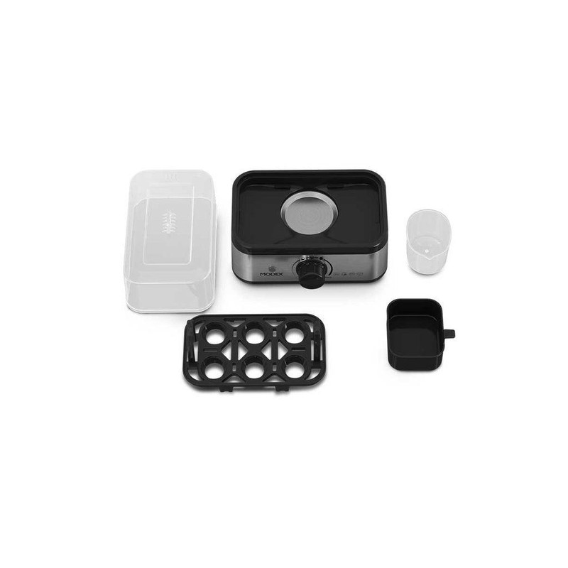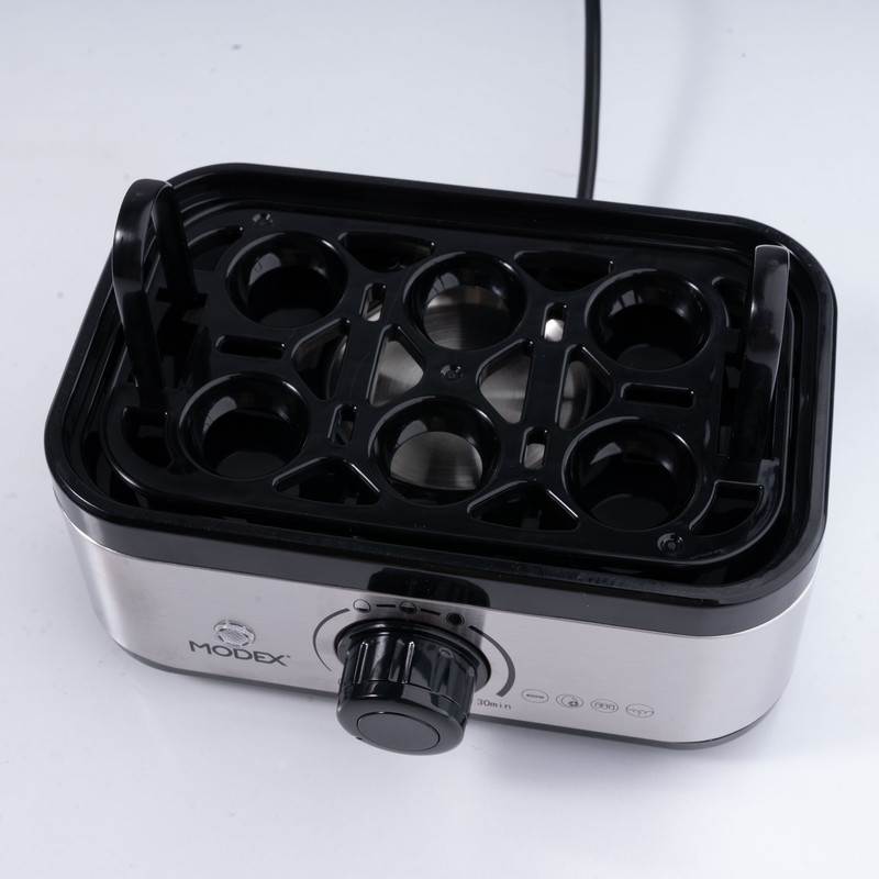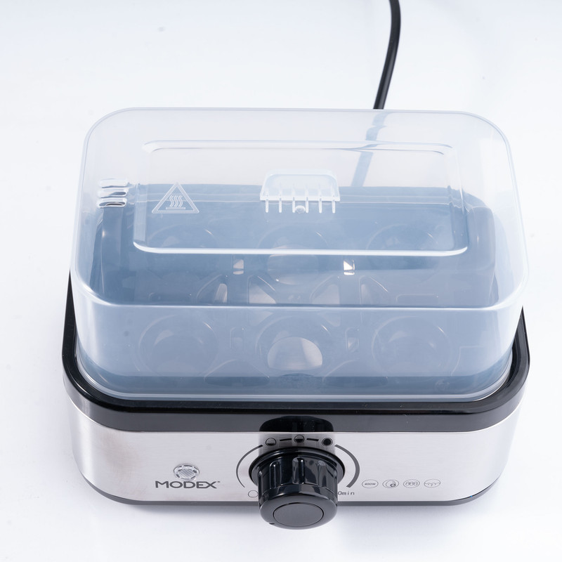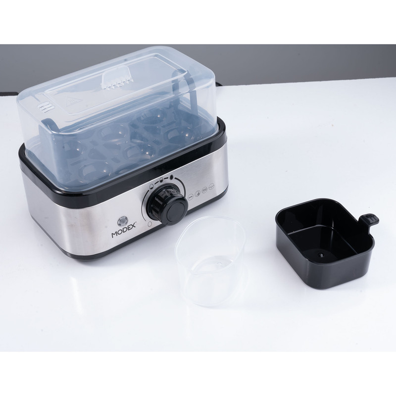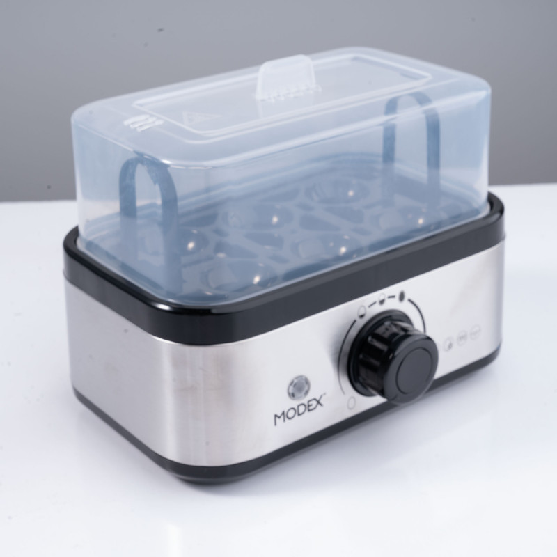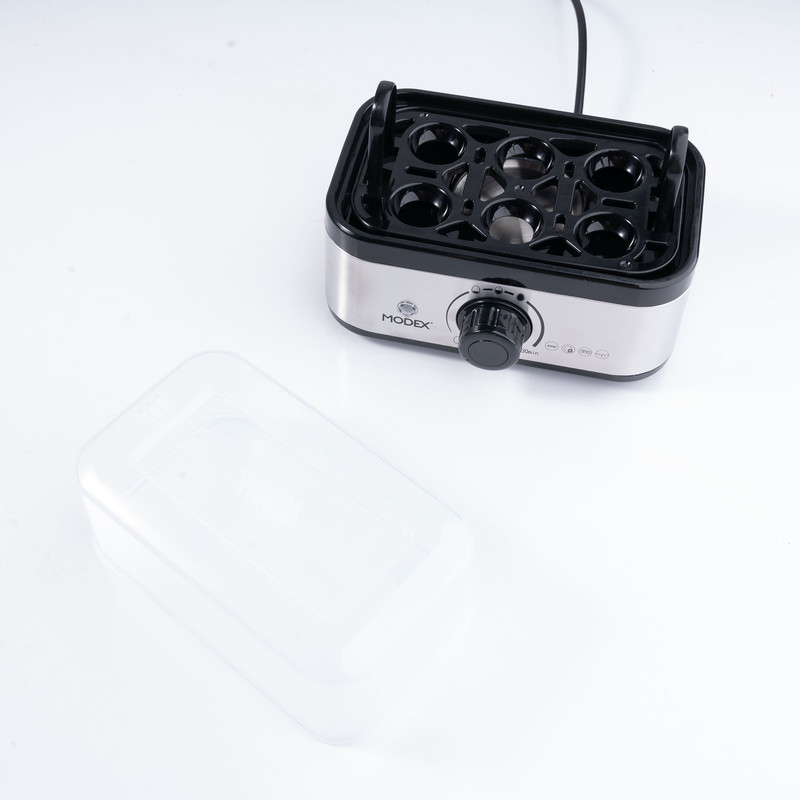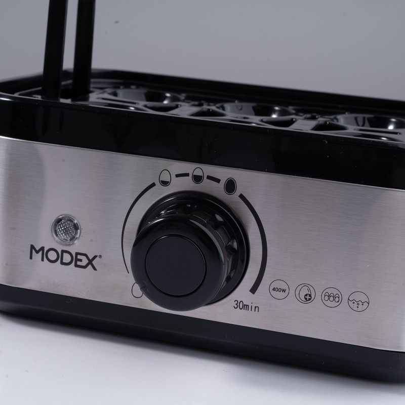 تخم مرغ پز مودکس مدل EB120 یک دستگاه ویژه برای پخت تخم مرغ به میزان دلخواه است. این تخم مرغ پز دستگاهی کوچک و جمع و جور است، که فضای بسیار کمی را گرفته و همچنین وزن سبکی دارد. این دستگاه با توان مصرفی 400 وات، قابلیت بخار پز کردن تخم مرغ، املت، نیمرو، ذرت و ... را به شما میدهد. شما میتوانید با استفاده از ولوم چرخشی، بین سه برنامه بخارپز میزان پخت مورد نظر خود را تعیین کنید. در واقع این ولوم چرخشی از خاموش کردن تا مدت زمان 30 دقیقه را پوشش میدهد. با توجه به میزان پخته شدن میتوانید مدت زمان مد نظرتان را انتخاب کنید. برای نمونه اگر بخواهید تخم مرغ عسلی باشد باید مدت زمان را بر روی 10 دقیقه تنظیم کنید ولی اگر بخواهید تخم مرغ سفت باشد، باید مدت زمان پخت را بر روی 15 دقیقه تنظیم نمایید. این دستگاه دارای خاموشی خودکار به همراه آلارم پایان پخت است که به شما اطلاع میدهد که غذای شما آماده شده است. همچنین چراغ نشانگر، روشن و خاموشی دستگاه را به شما نشان میدهد. صفحه گرم شونده دستگاه از جنس استیل ضدزنگ مقاوم و با دوام است. ظرفیت سینی بخارپز 6 عدد تخم مرغ است که برای خانوادههای کوچک و متوسط مناسب است. تخم مرغ پز مودکس مدل EB120 یک دستگاه با کاربری آسان و راحت است. شما فقط کافی است که تخم مرغ یا مواد دیگر را در سینی قرار دهید، مقدار آب را با پیمانه مدرج بریزید، برنامه بخارپز را تنظیم کنید و دکمه روشن را فشار دهید. بعد از پایان پخت، دستگاه به صورت خودکار خاموش میشود و آلارم صدا میدهد. لازم به ذکر است که به همراه این محصول پیمانه پلاستیکی مدرج و سینی مخصوص بخارپز و املت نیز عرضه میشود.