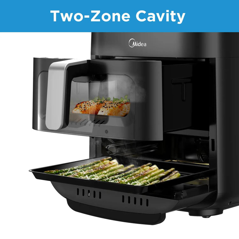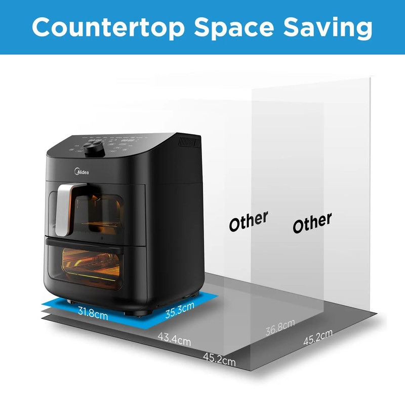 3 لوله گرم کننده برای پخت و پز قدرتمند: سرخ کن هوای Midea دارای 3 لوله گرمایش در قسمت بالا، وسط و پایین حفره است که امکان کنترل دقیق دما و پخت عصرانه را برای هر منطقه فراهم می کند.