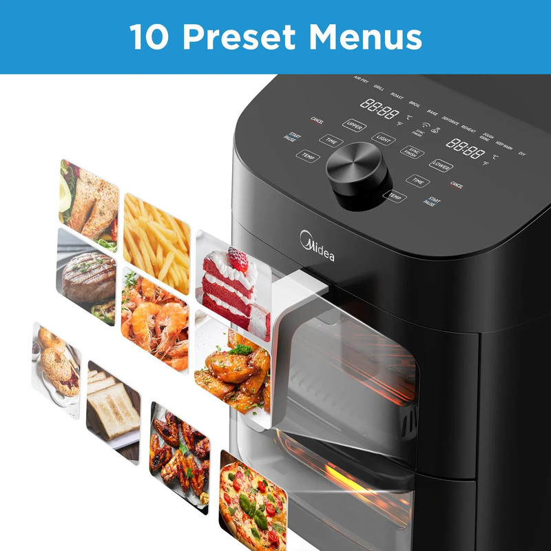 همه کاره بودن 8 در 1: سرخ کردن هوای Midea دارای 8 منوی از پیش تعیین شده است: سرخ کردن با هوا، گریل، آبگیری، پخت، کباب، برشته، گرم کردن و نان تست. این تنها 1 وسیله همه کاره شما در آشپزخانه خواهد بود!