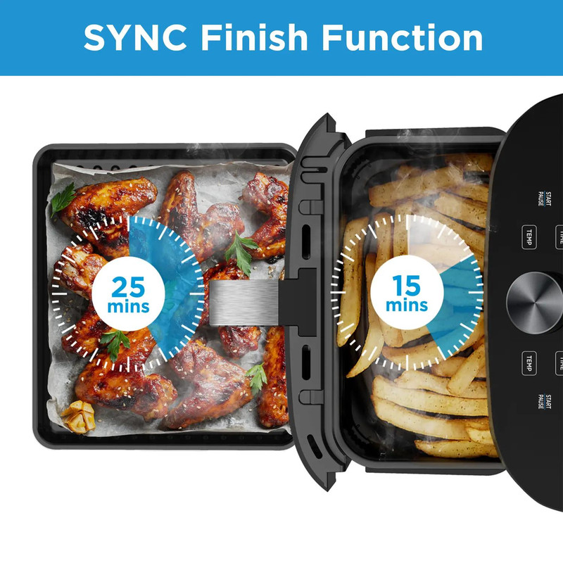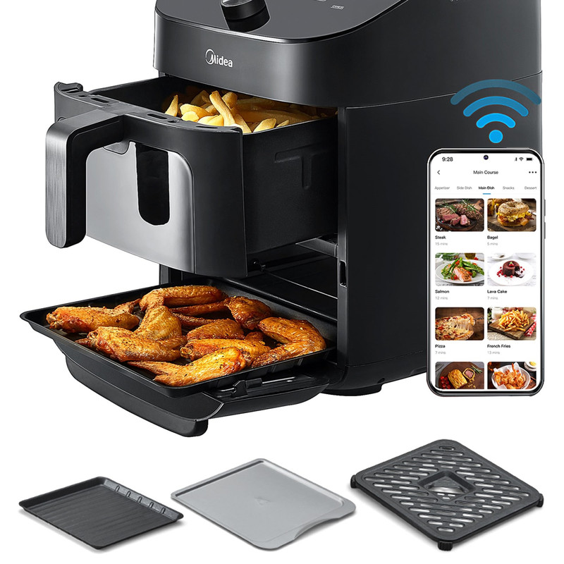 طراحی نوآورانه دو طبقه Midea: Mad -110 D2 apk این سرخ کن هوای دوتایی دارای یک سبد بالای 6QT و یک تابه پخت 5QT پایینی است که ظرفیت بزرگ 11QT را ارائه می دهد اما با طراحی منحصر به فرد خود جای کمتری را اشغال می کند. سبد برای سیب زمینی سرخ کرده، ناگت، و ماهی تابه برای پیتزا، نان. همه چیز به تو بستگی دارد!