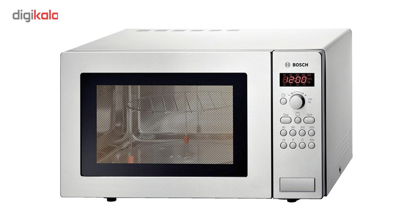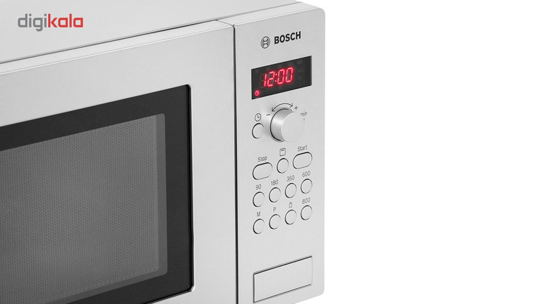 مایکروویو مدل «HMT84G451» از محصولات شرکت معتبر «بوش» است که از کیفیت ساخت بسیار خوبی بهره میبرد. این دستگاه از طراحی ظاهری ساده و شکیلی برخوردار است و از بدنهی تمام استیل ساخته شده است. بدنهی دستگاه بسیار مستحکم و در برابر زنگزدگی مقاوم است. مایکروویو HMT84G451 دارای قابلیت گریل است که با توان 1200 وات کار میکند. پنل تنظیمات دستگاه در سمت راست قرار گرفته و از یک پیچ ولومی و چندین دکمهی فشاری تشکیل شده است. از طریق این پنل کاربر قادر است نوع کارکرد دستگاه، زمان پخت و توان کارکرد آن را مشخص و برنامهریزی کند. توان این مایکروویو قابل تنظیم در پنج سطح 90، 180، 360، 600 و 900 وات است. نمایشگر دیجیتالی نیز در این قسمت تعبیه شده است که زمان پخت و همچنین ساعت را نمایش میدهد. این مایکروویو فاقد دسته است و در دستگاه با فشردن دکمهی بزرگ مستطیلی شکل روی بدنه باز میشود. مایکرویو مدل HMT84G451 دارای سه برنامهی پخت اتوماتیک است تا با توجه به نوع مواد غذایی بتوانید حالت بهینه را برای کارکرد دستگاه انتخاب کنید. صفحهی چرخندهی داخل مایکروویو دارای قطر 31.5 سانتیمتر و از جنس شیشهی مقاوم به حرارت است.