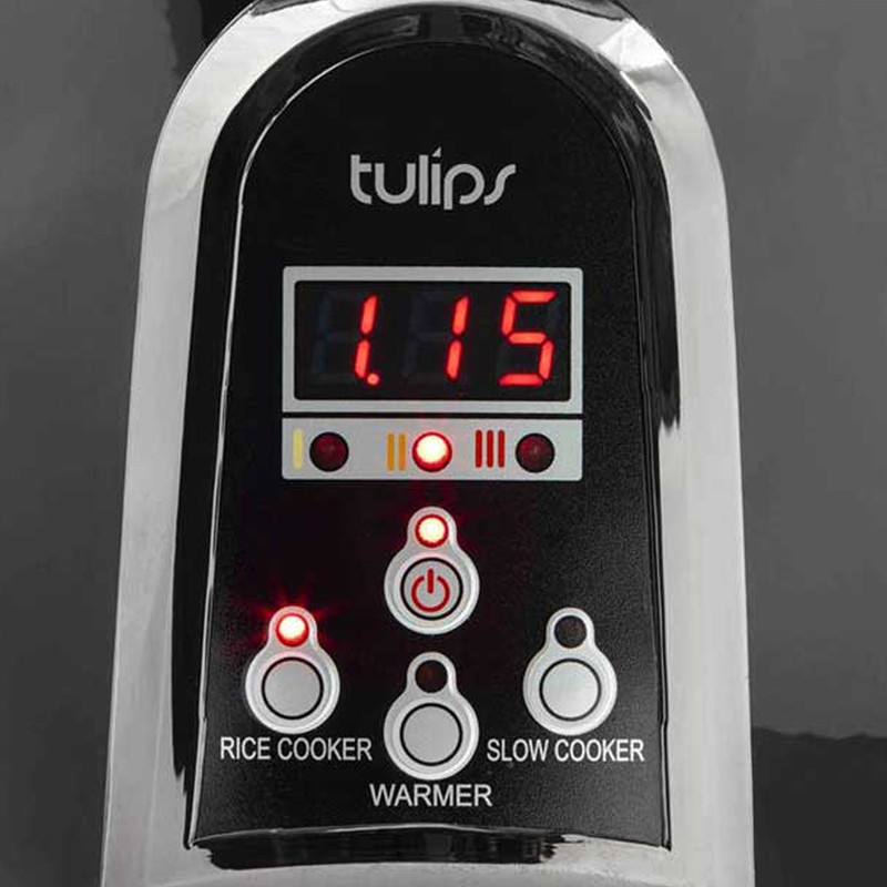 این مولتی کوکر از محصولات کارآمد تولیپس است که بر اساس استانداردهای ژاپنی و هنر ایرانی عرضه میشود. توان این پلوپز برابر با 520 وات است. این دستگاه از ظرف تفلون نچسب با قابلیت جدا شدن، بدنه مقاوم و درب شیشهای ساخته شده است که دارای دوام و کیفیت قابلتوجهی است. پلوپز تولیپس مدلRC - 440 - 4 (4 نفره) دارای پلوپز با سه نوع ته دیگ، گرم نگهدارنده، آرام پز است که با استفاده از دکمههایی که در جلوی آن قرار گرفته است، قابل انتخاب است. با استفاده از تایمر در نظر گرفته شده میتوانید زمان پخت غذا را تنظیم کنید. برای این پلوپز، یک صفحه نمایش در نظر گرفته شده است که میتوان وضعیت تنظیمات را روی آن مشاهده کرد. ظرفیت این پلوپز برابر با 0،9 لیتر است که برای تهیه غذای 4 نفر کافی می باشد.